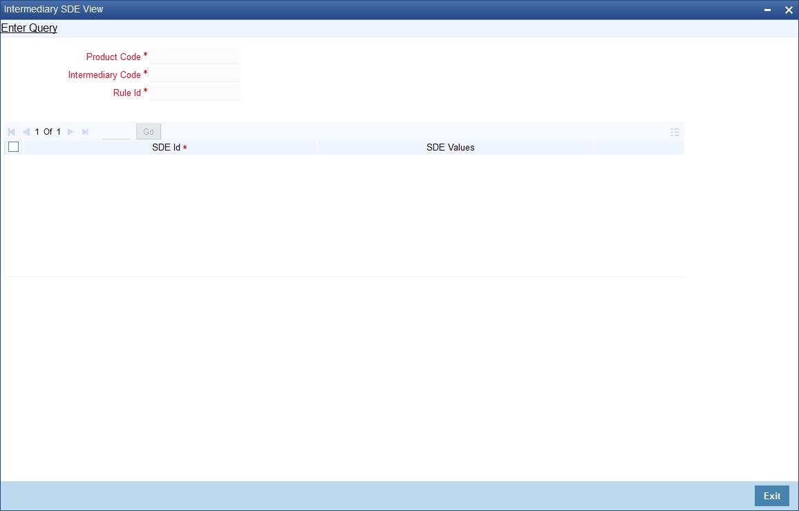 Specify the Intermediary code for which you want to view SDEs. The adjoining option list displays all valid Intermediary codes maintained in the system. You can select the appropriate one.