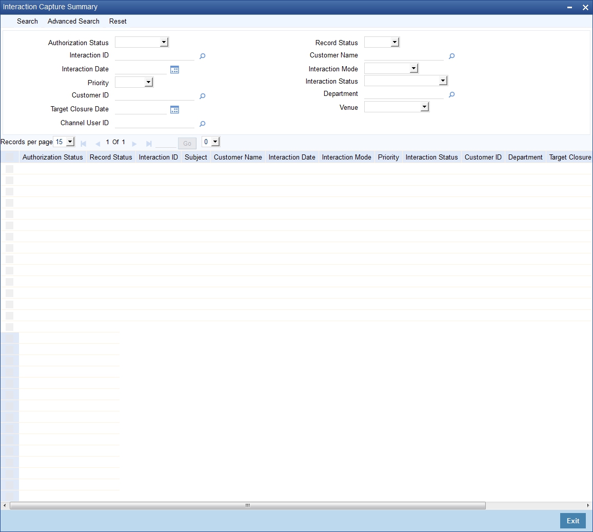 Using Oracle FLEXCUBE, you can capture the interactions with the customers. This helps you to track and address the request of the customers. You can also capture the internal interactions (within the bank) triggered by the original interaction with the customer.