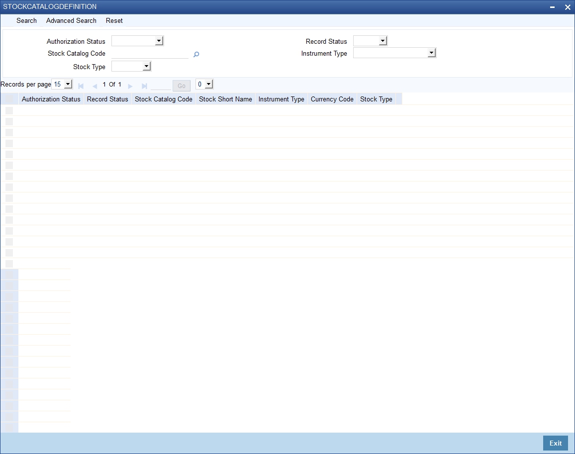You can use the ‘Stock Catalog Definition’ screen for definition of the stock catalog for different types of financial instruments.