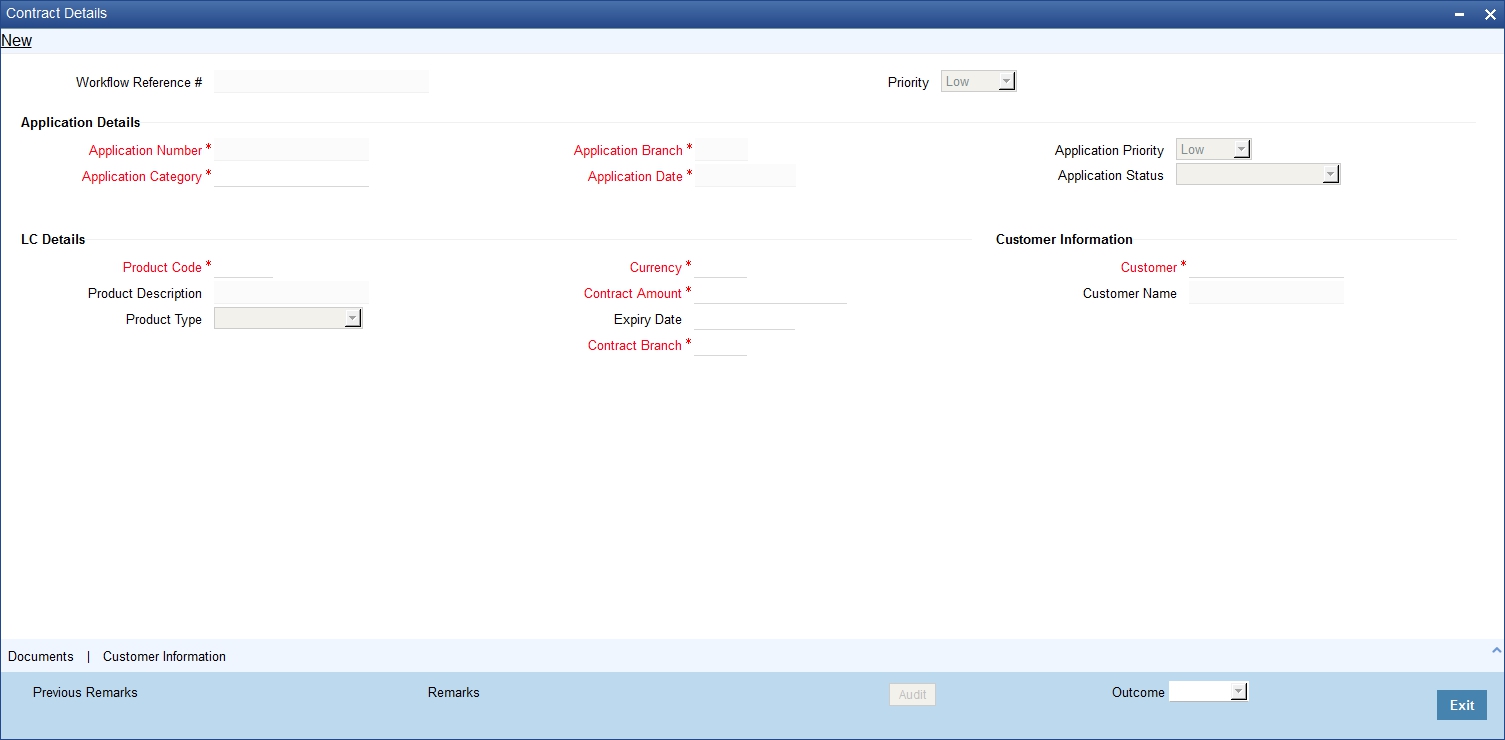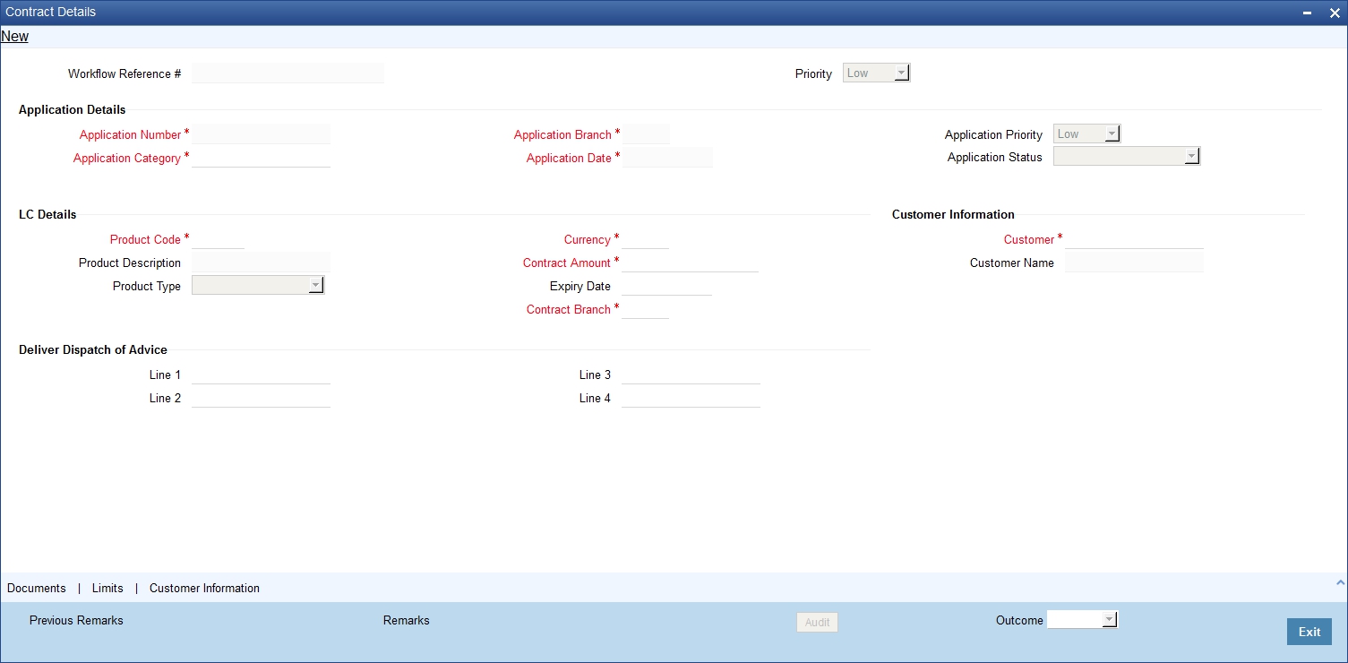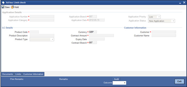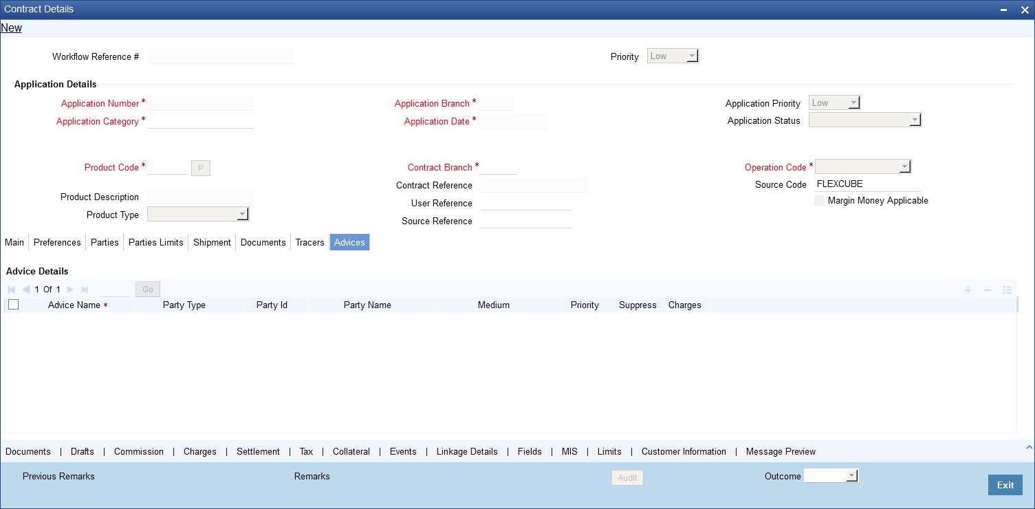 Refer to the chapter titled ‘Processing a LC Contract’ in the Letter of Credit User Manual for further details about the fields, tabs and buttons in the screen.