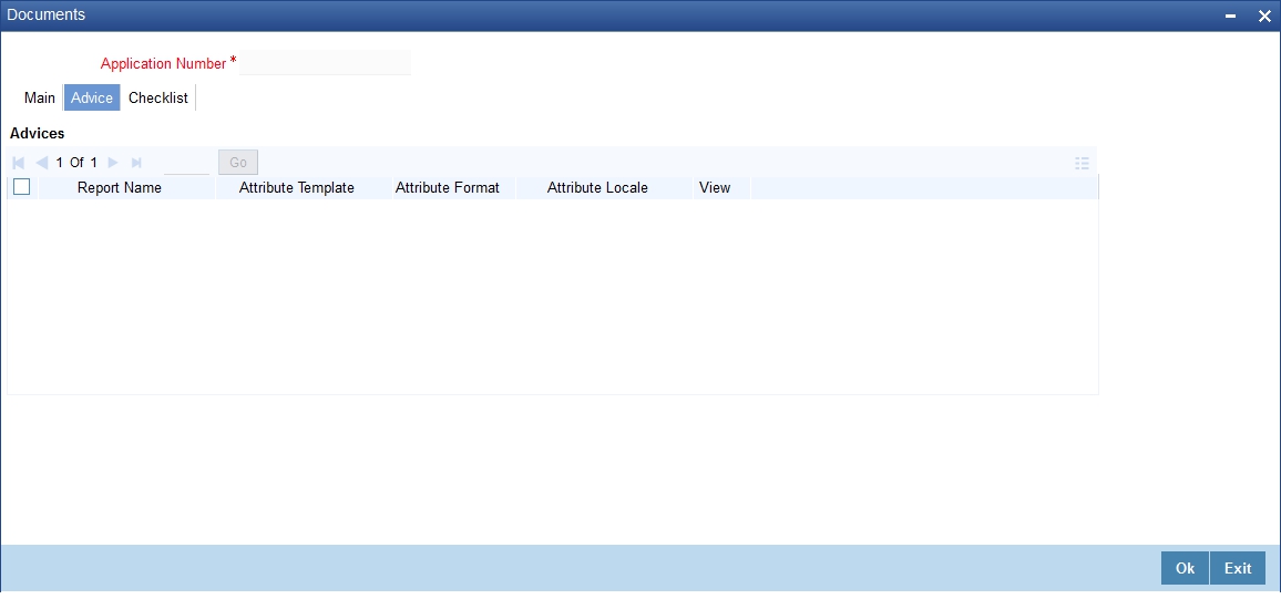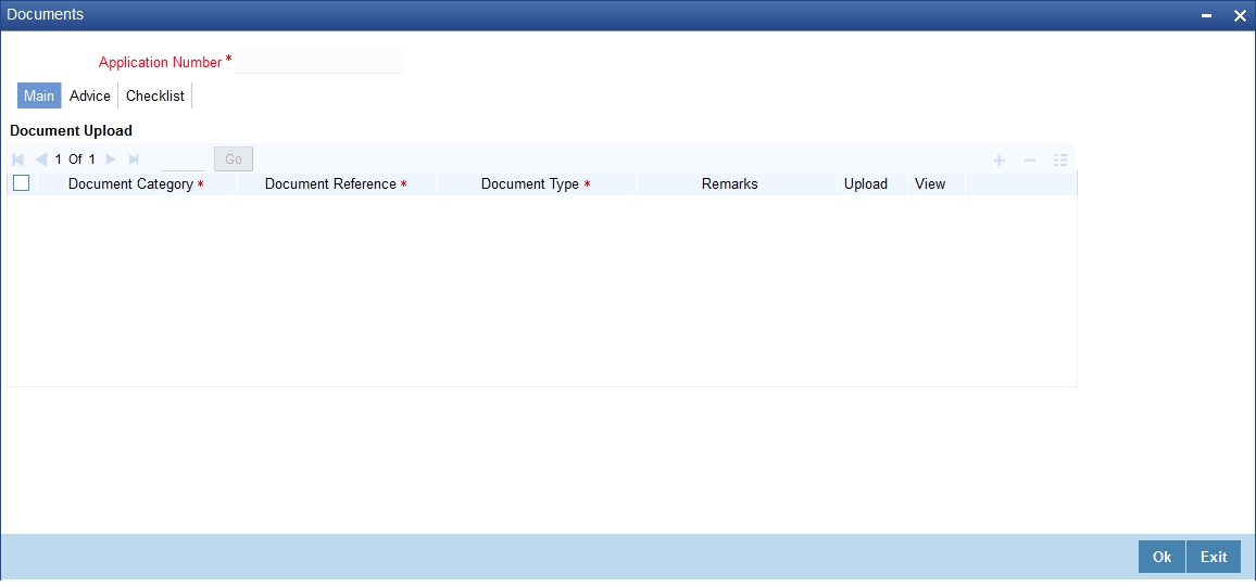 Specify the Application number to view the existing records through this screen. Users belonging to any kind of role can perform this activity.