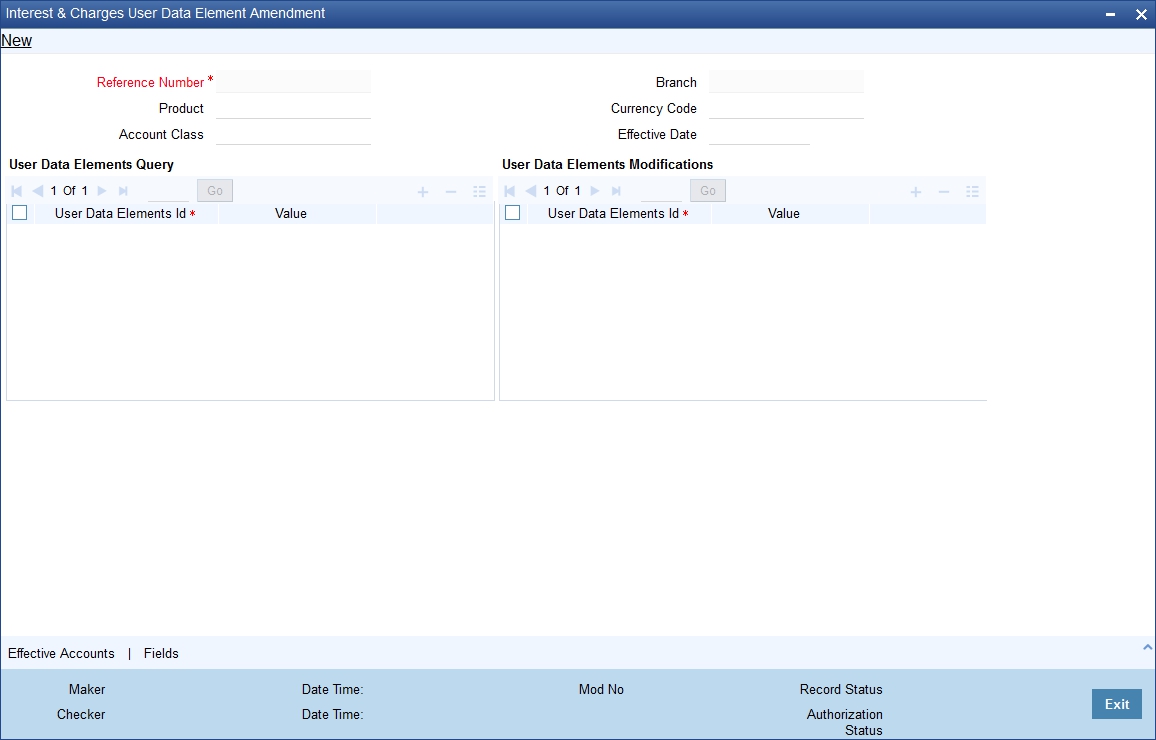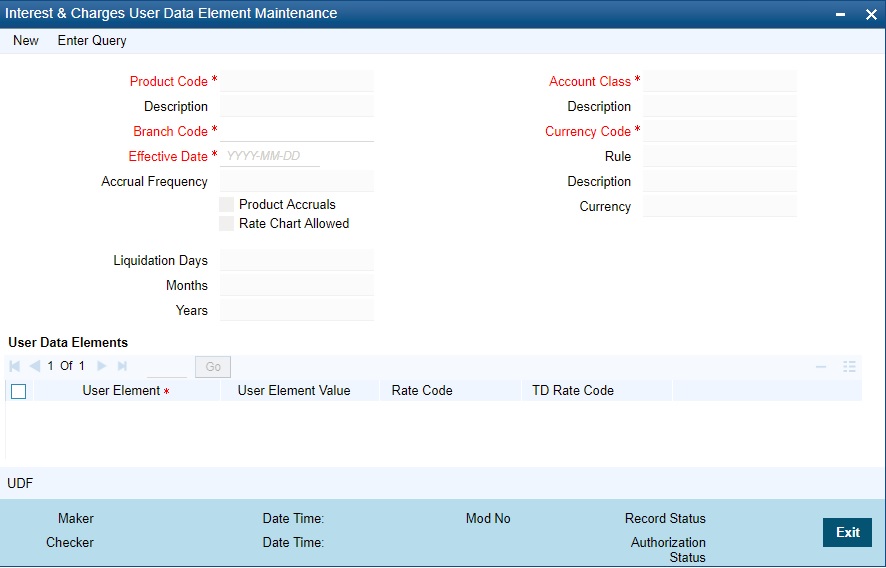 You can modify UDE values in the ‘User Defined Elements Values Maintenance’ Query screen. Invoke this screen from the Application Browser. You can invoke the ‘Interest & Charges User Data Element Amendment’ screen by typing ‘ICDUDEUL’ in the field at the top right corner of the Application tool bar and clicking the adjoining arrow button.