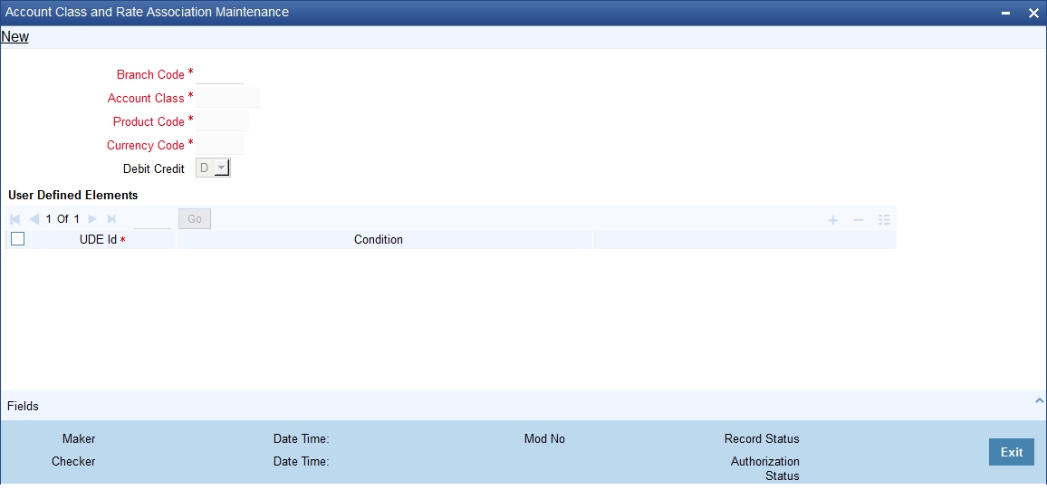 You enter the values of UDEs such as Amount and Number in the UDE Maintenance screen. The Debit or Credit rate is the rate at which interest has to be calculated for the accounts linked to the Interest Rule. These rates can be either: