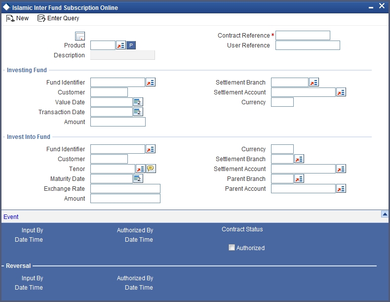 You can invoke the ‘Islamic Inter Fund Subscription Online’ screen by typing ‘IADIFONL’ in the field at the top right corner of the Application tool bar and clicking the adjoining arrow button.