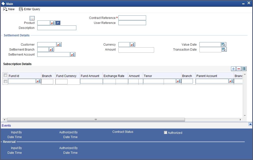 You can enter details of a Multi Fund Subscription Transaction through the Multi Fund Subscription Online screen and the Inter Fund Subscription Online screen. The Multi Fund Subscription Transaction screen is used to enter a subscription transaction for funds for which you have specified the Operation Type as being Investment Subscription. The Inter Fund Subscription Online screen is used to enter a subscription transaction for funds for which you have specified the Operation Type as being Inter-Fund Subscription.