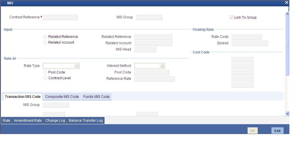 Click ‘Rate’ button on the ‘MIS’ screen and invoke the ‘Rate Details’ screen.