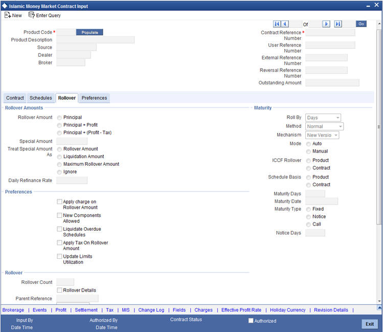 The Maturity Type, which you have specified for the old deal, will apply to the deal being rolled over, by default. However, you can change the Maturity Type through this screen.
