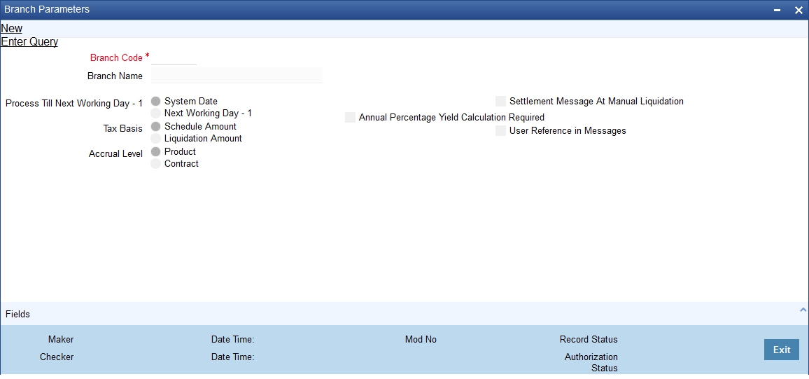 In some cases, for example, if a manual liquidation is done, the accrual entries will be passed immediately by the system. If this falls on a holiday, the accruals will be done as per your holiday handling specifications for automatic processes, in the Branch Parameters screen.