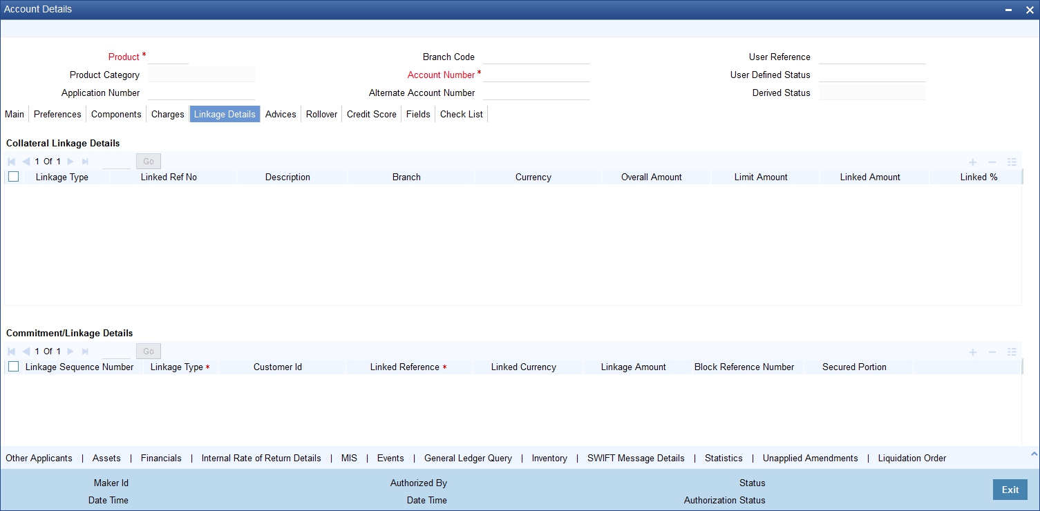 Click the ‘Linkage Details’ tab to maintain the linkage details and remarks for VAMI. The screen is displayed below: