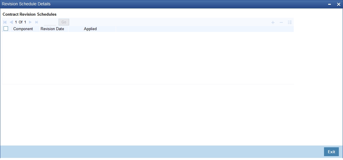 If you were to define specific dates − 7 October, 15 October and 23 October − for the rate revision to happen, then, through the Contract Schedules screen, mark the component as a revision schedule and specify the component, say INTEREST, from the picklist.
