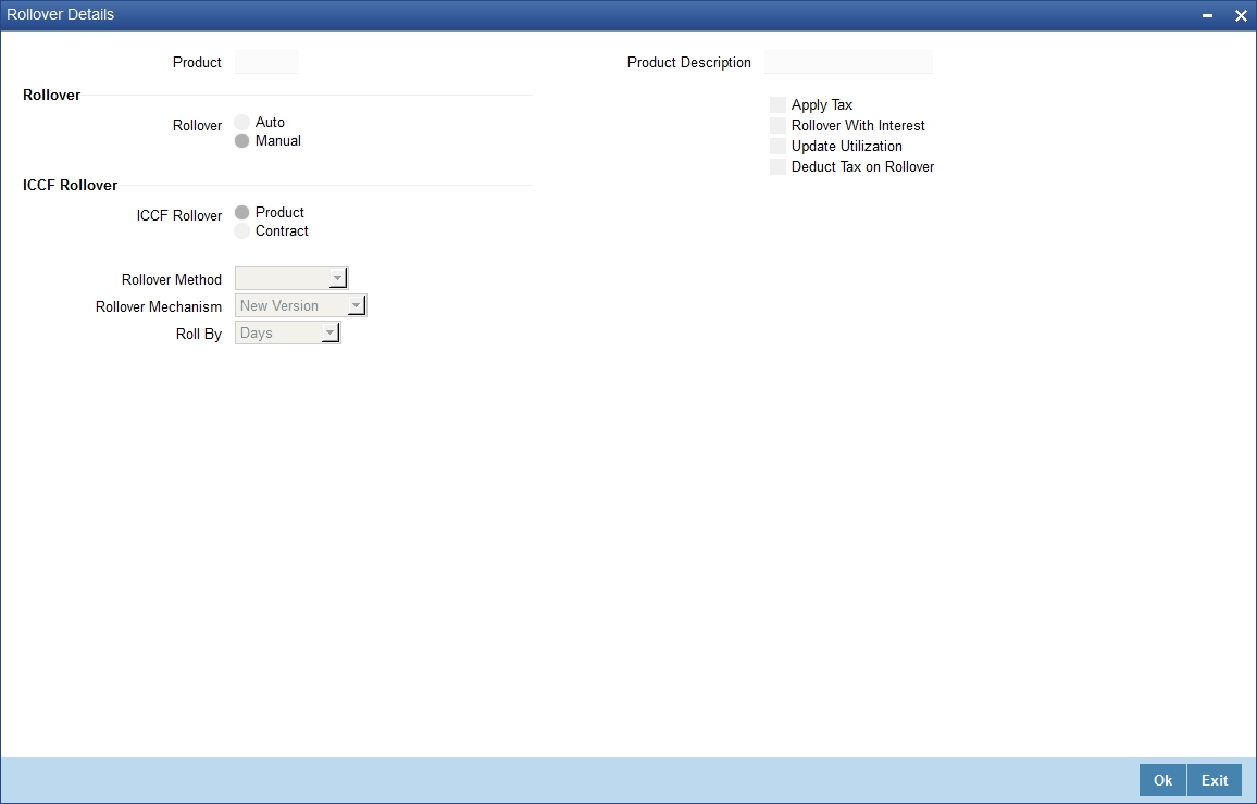 For deals involving a product for which a rollover is allowed, you should specify the mode of rollover - automatic or manual - during processing.