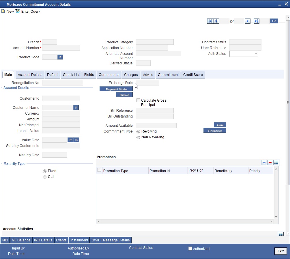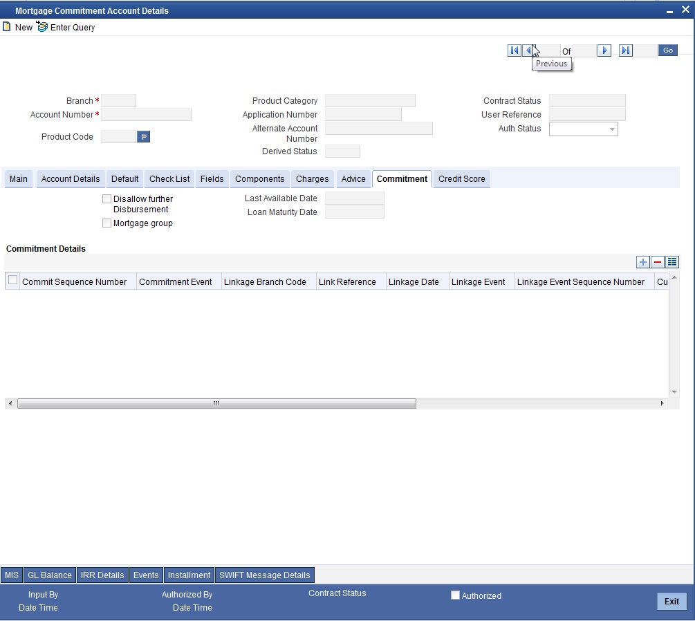 For field explanations on all tabs except Commitment tab refer section ‘Creating a Mortgage Account’ in this chapter.