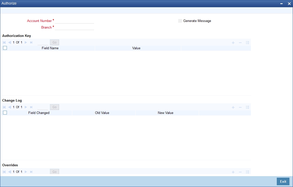 High value accounts may require multilevel of authorization. The levels of authorizations are defined in the ‘Product Transaction Limits’ screen. You can use the ‘Multilevel Authorization Detailed’ screen for authoring an account n-1 times. However, final authorization can take place only in the main account screen.
