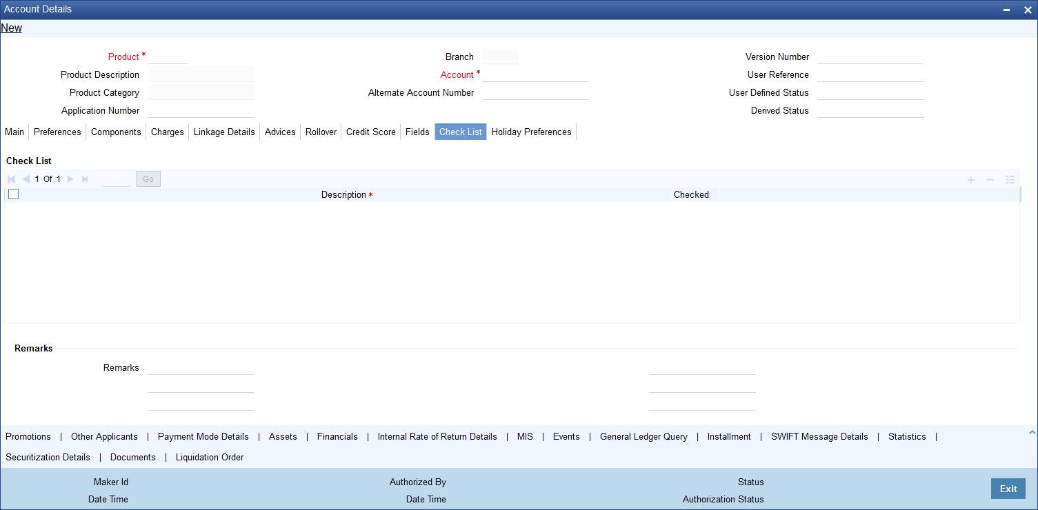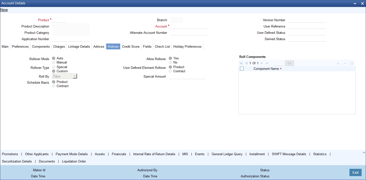 If you check this option, the system will not allow further disbursements on this commitment account. Whereas, if you check this option, the system allows further disbursements on this commitment account. By default, the system displays the status as unchecked. However, you can modify this.