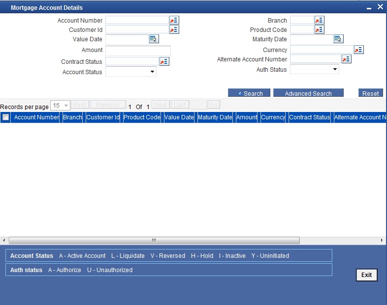 You have to save a mortgage/commitment account after entering all the required details in the system. Click Save icon on the Toolbar or choose ‘Save’ from the Actions menu to save an account. The system updates this as an unauthorised account. To authorize an account, click ‘Authorize’ icon on the Application toolbar.