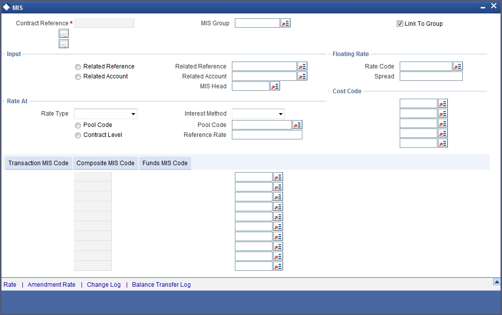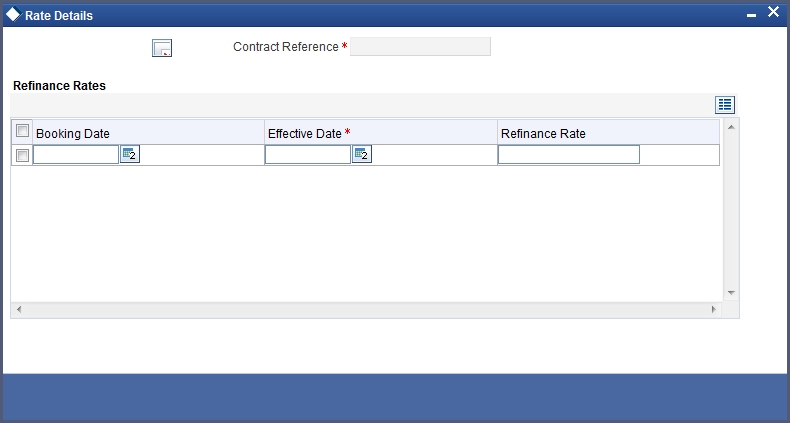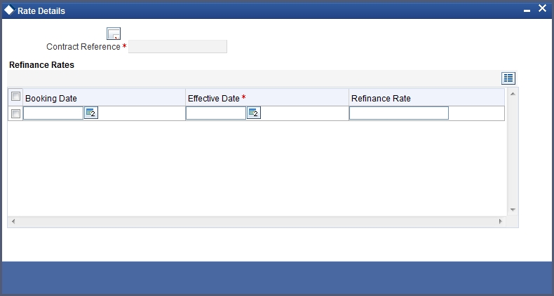 Click ‘Rate’ button on the ‘MIS’ screen and invoke the ‘Rate Details’ screen.