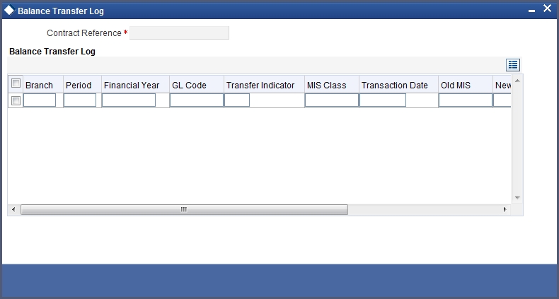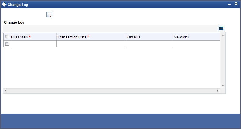 If MIS reclassification occurs, through changing the MIS codes for transaction or composite classes, the System stores the changes made, in a Contract MIS Change Log. The following details are stored in the Contract MIS Change Log for the contract in respect of which the MIS reclassification occurred: