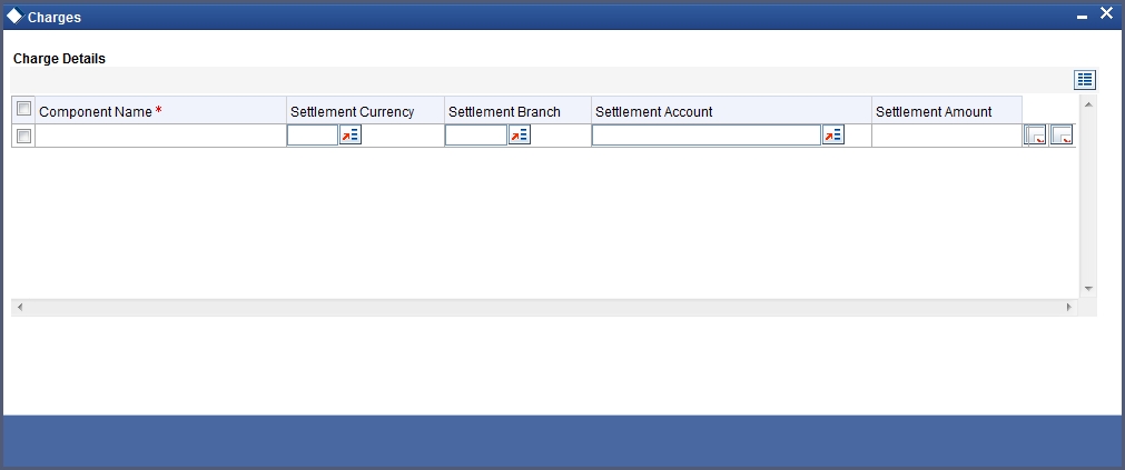 Click ‘Charge’ button on the ‘CL User Defined Events Triggering’ screen and invoke the ‘Charges’ screen.