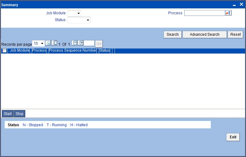 In Oracle FLEXCUBE, you need to run the background process to generate and print advices. In addition to the generation of the advices, system will also print the advices that are scheduled to be generated during EOD processing. You can start or stop a process in the ‘Jobs Browser’ screen. You can invoke the ‘Jobs Browser’ screen by typing ‘CSSJOBBR’ in the field at the top right corner of the Application tool bar and click on the adjoining arrow button.