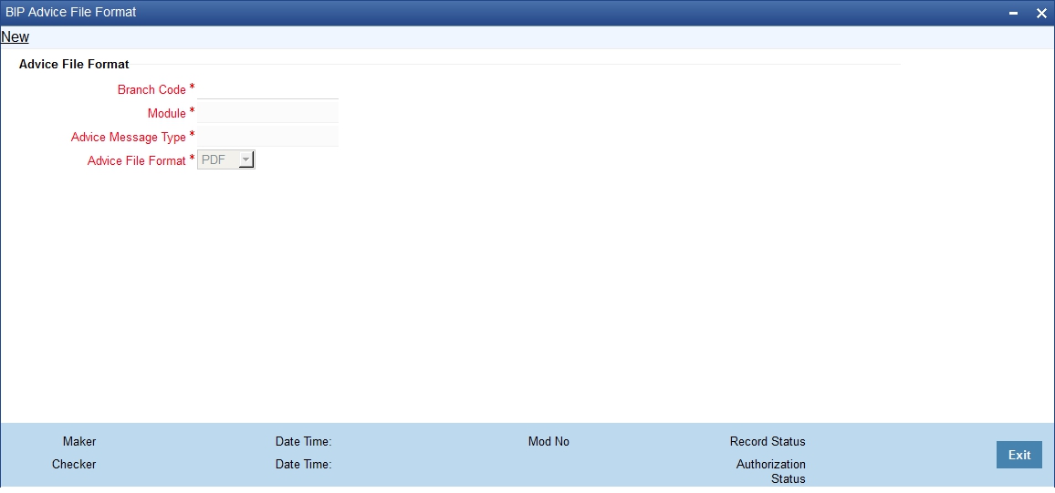 Specify branch code for which you need to maintain BIP advice file format, from the adjoining option list