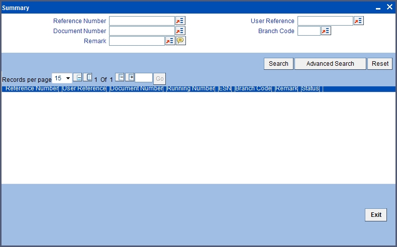 You can generate messages from the Outgoing Browser at any time in the day. You can invoke the ‘Outgoing Message Browser Summary’ screen by typing ‘MSSOUTBR’ in the field at the top right corner of the Application tool bar and clicking on the adjoining arrow button.