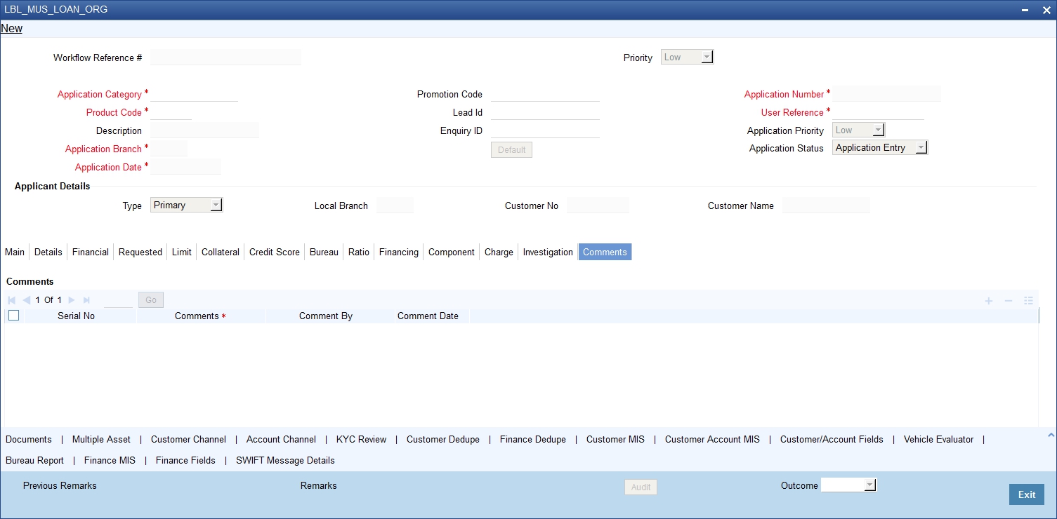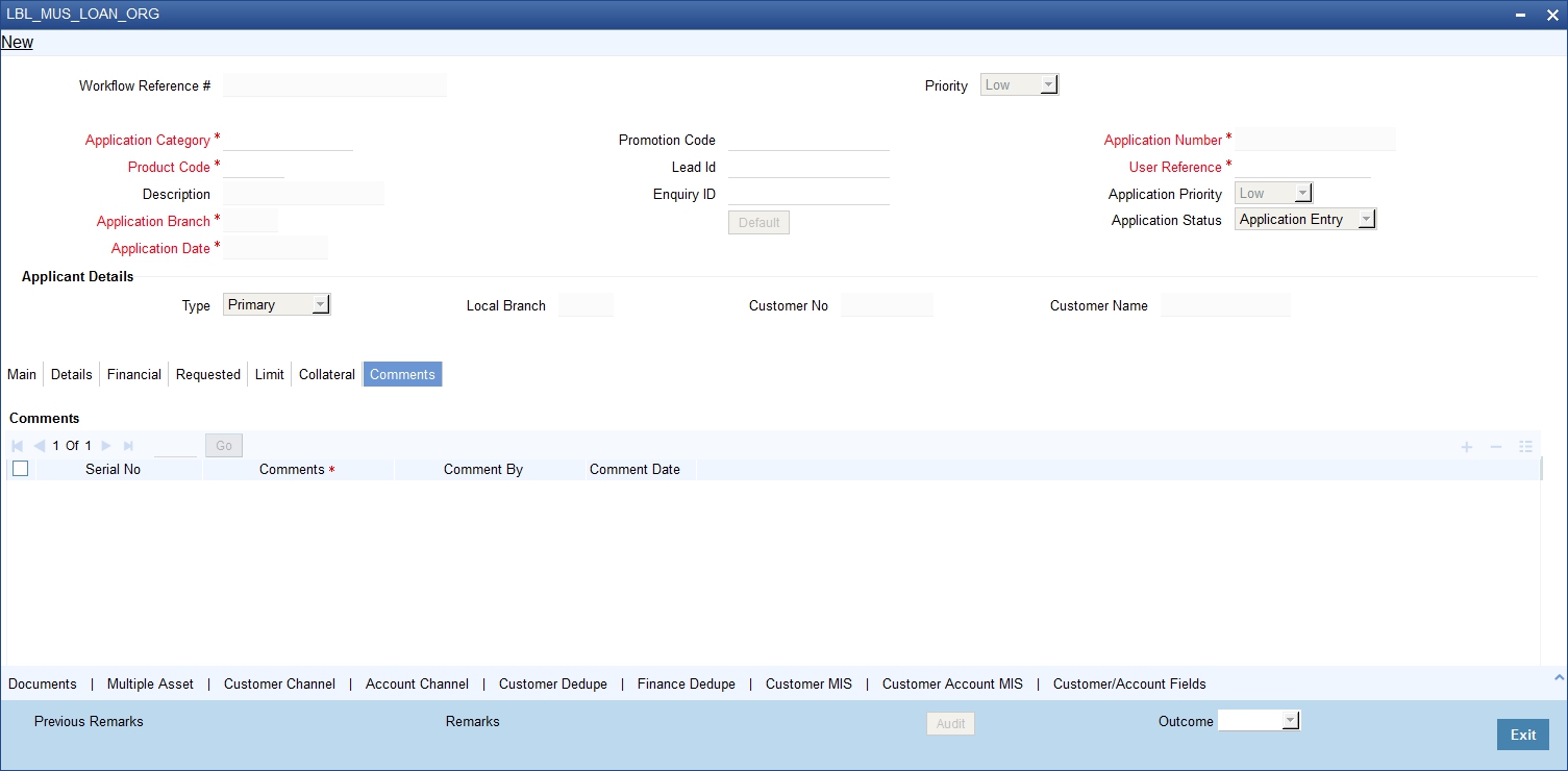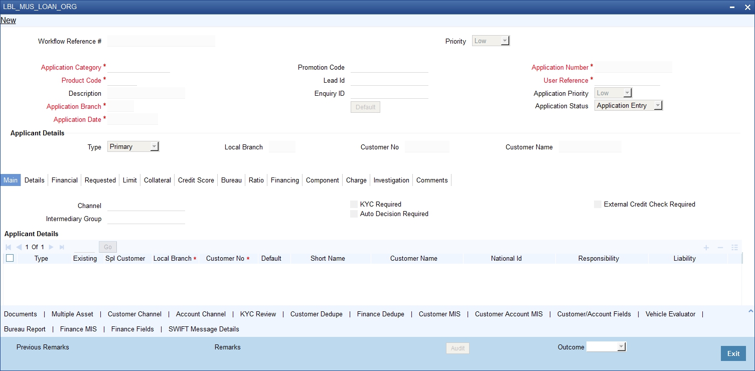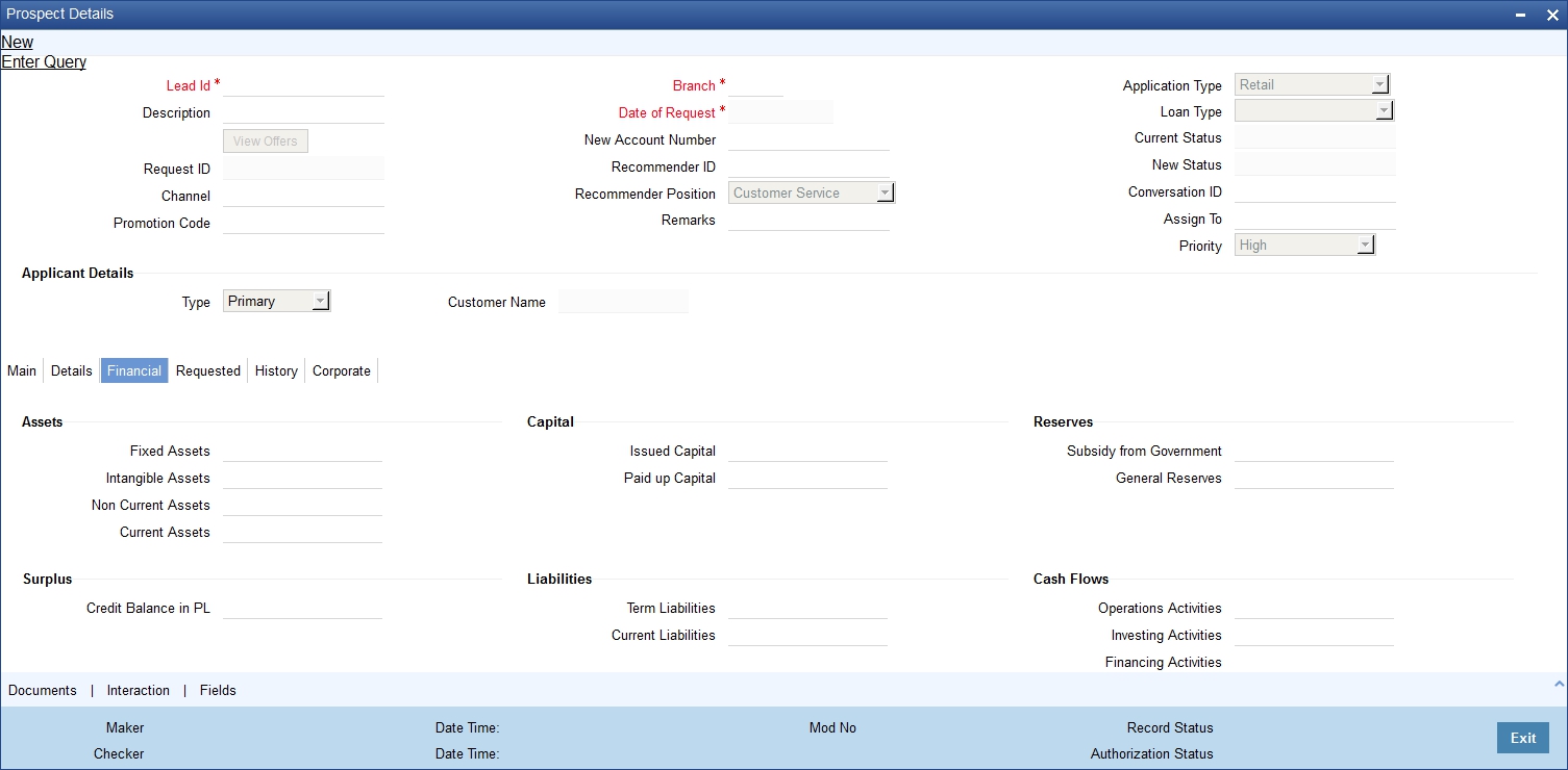 You can maintain the details of a prospective borrower or a finance applicant, when the borrower initially approaches the bank enquiring about the various finance products that are being offered.