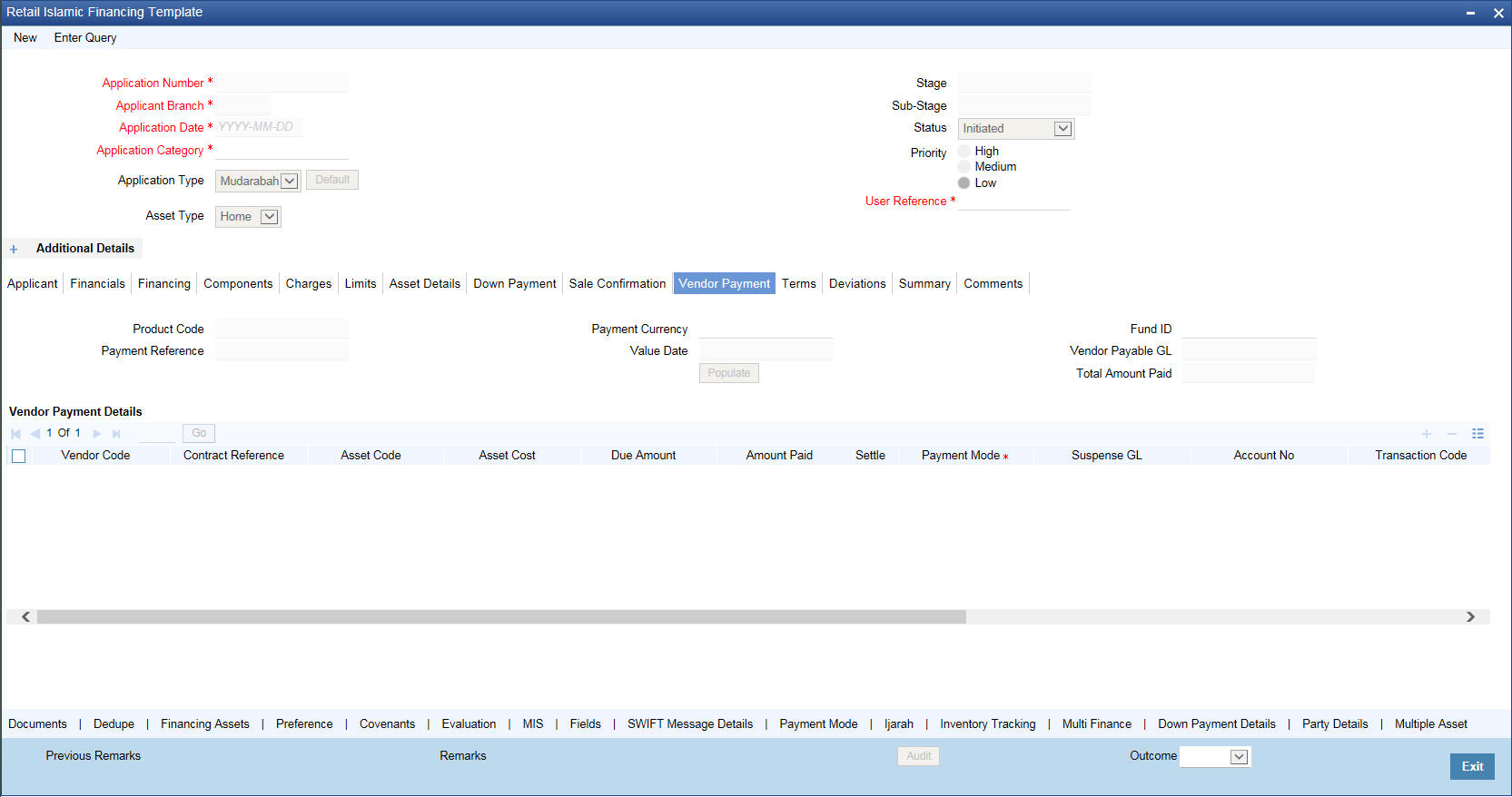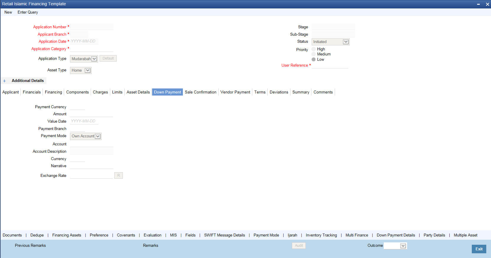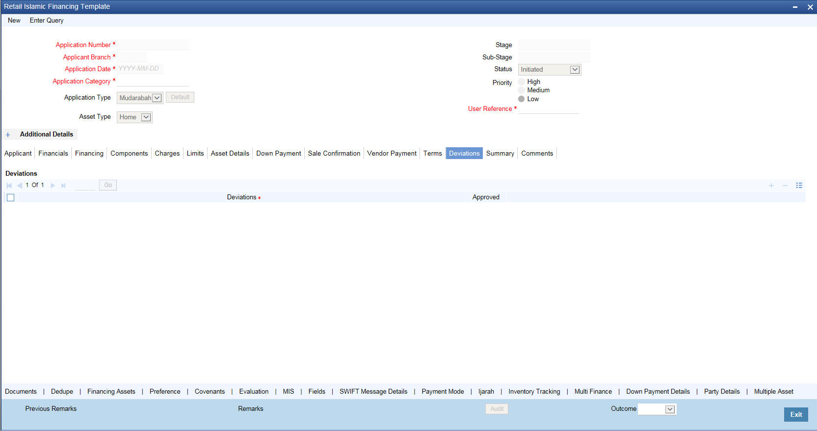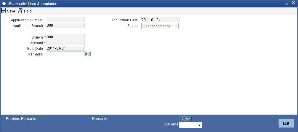 The following details need to be maintained for originating a Musharaka: