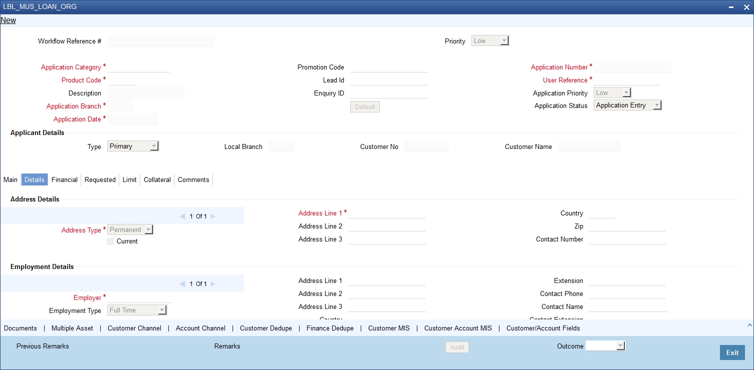 You can capture the address and employment related details of the prospective customer in ‘Details’ tab.