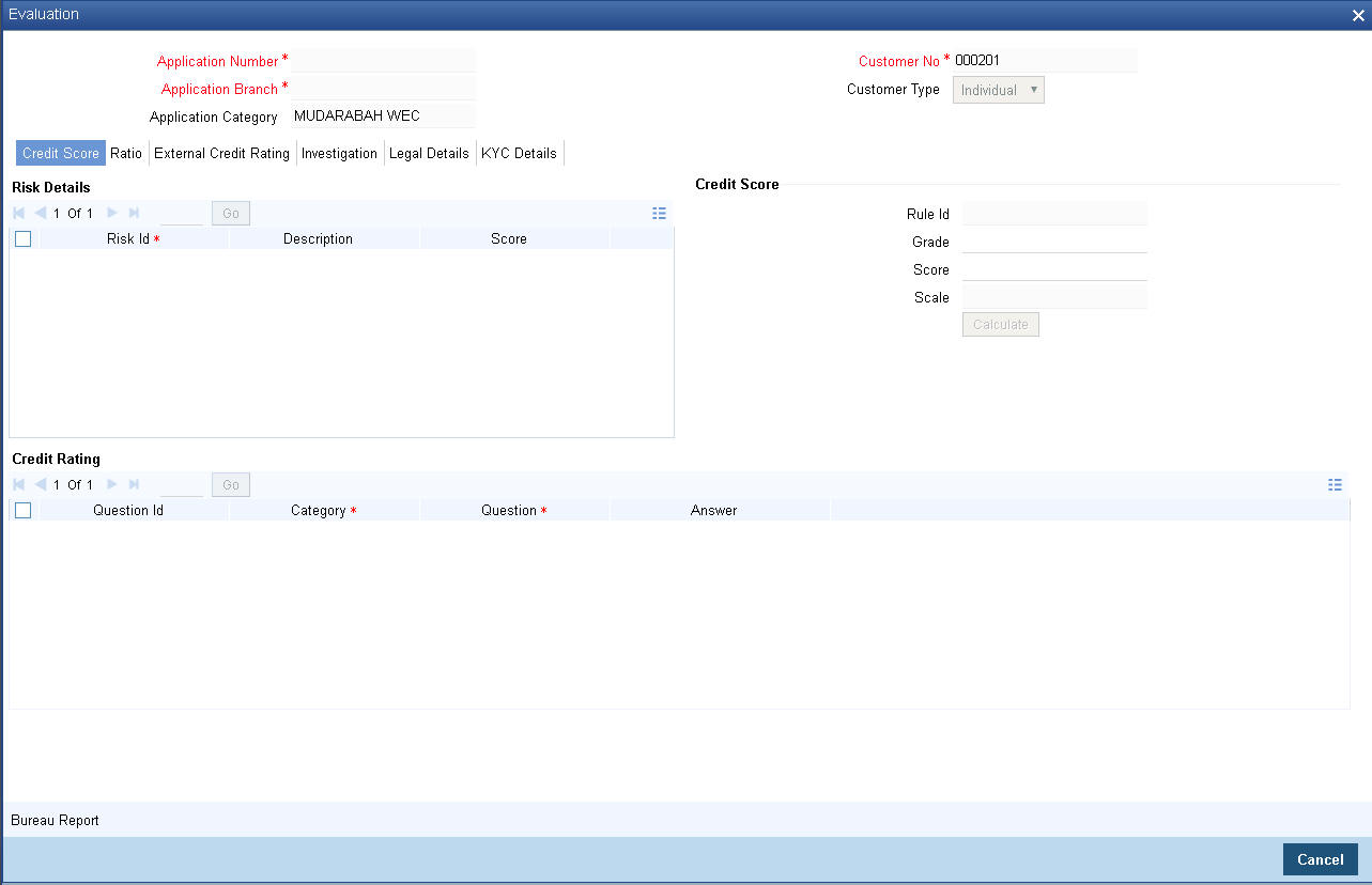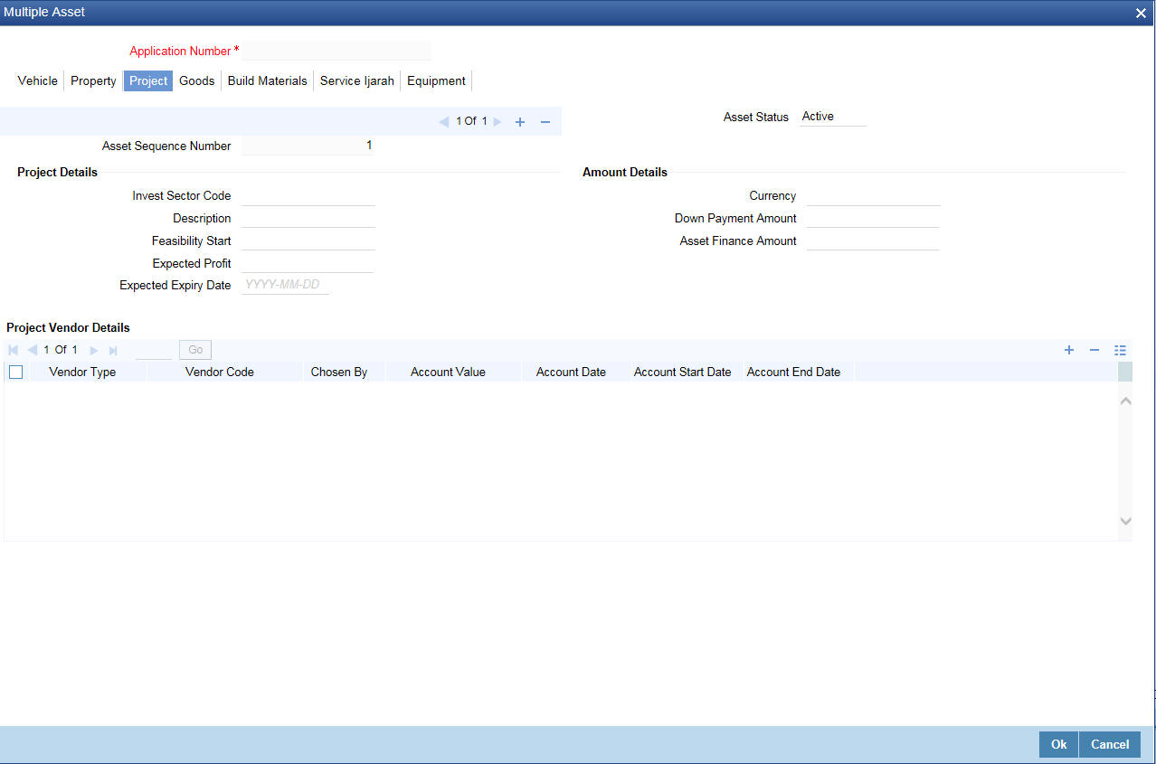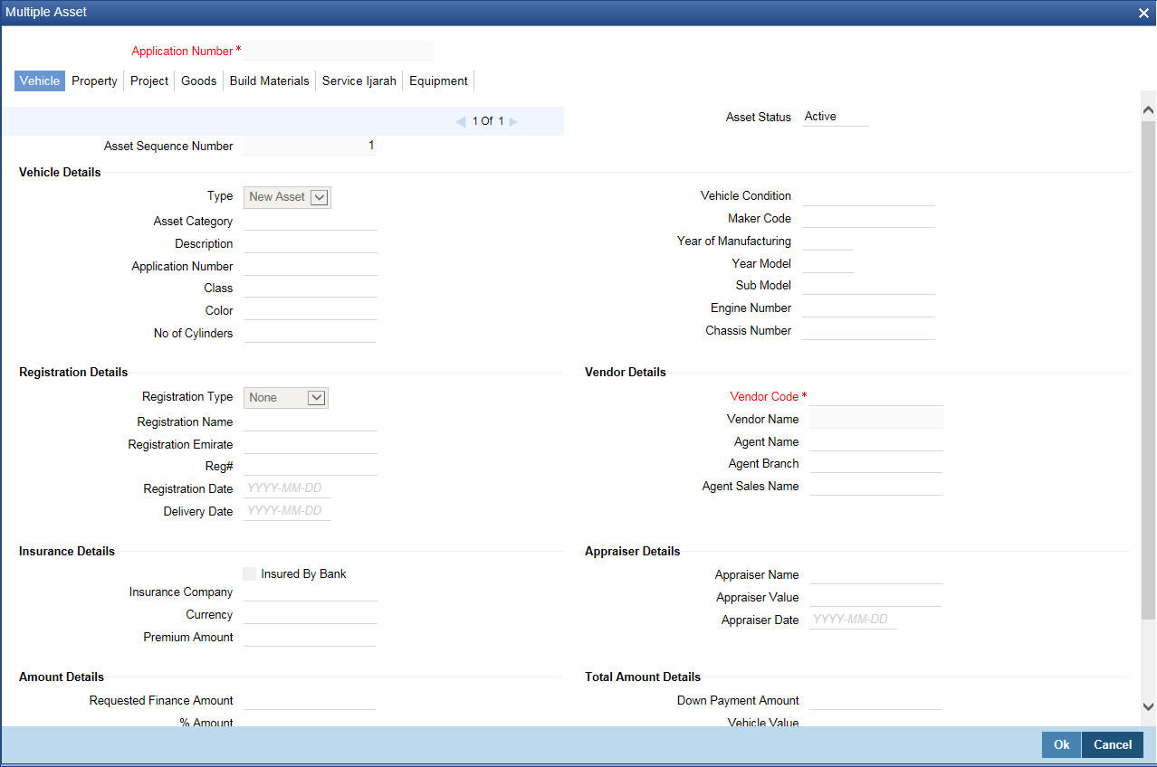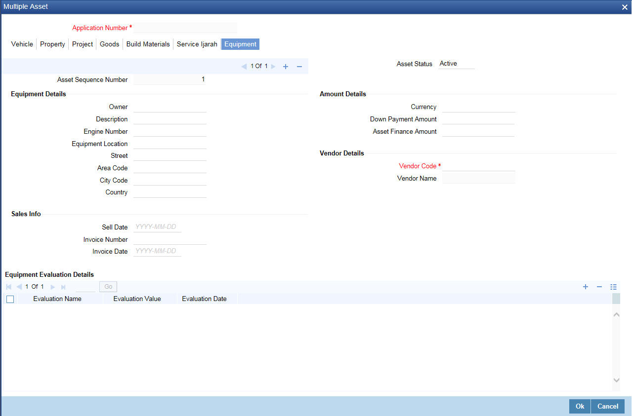 Click ‘Service Ijarah’ tab to specify the service Ijarah details.