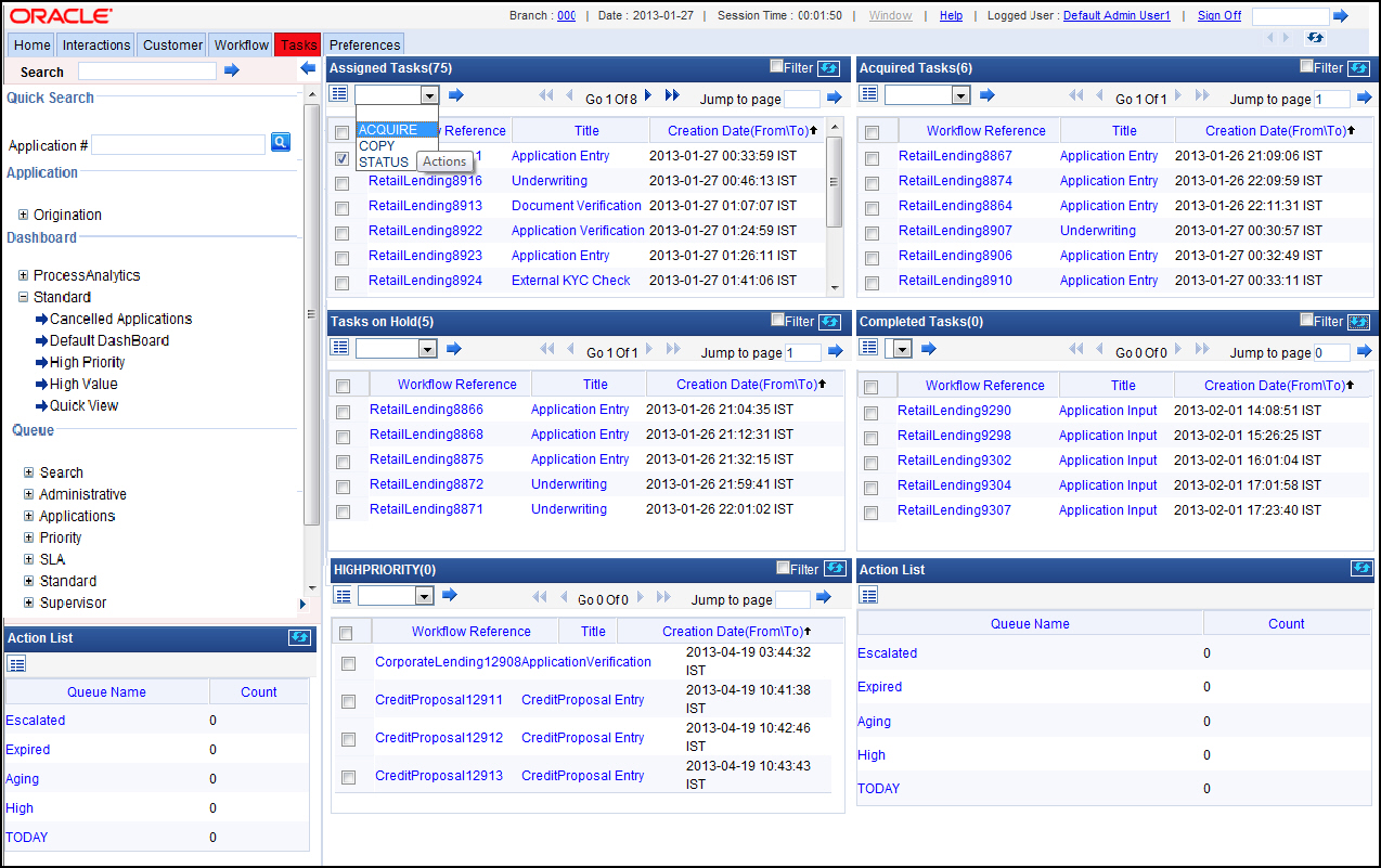Oracle FLEXCUBE allows you to configure dashboards with multiple queues, count various queues and map dashboards to specific user roles or users.