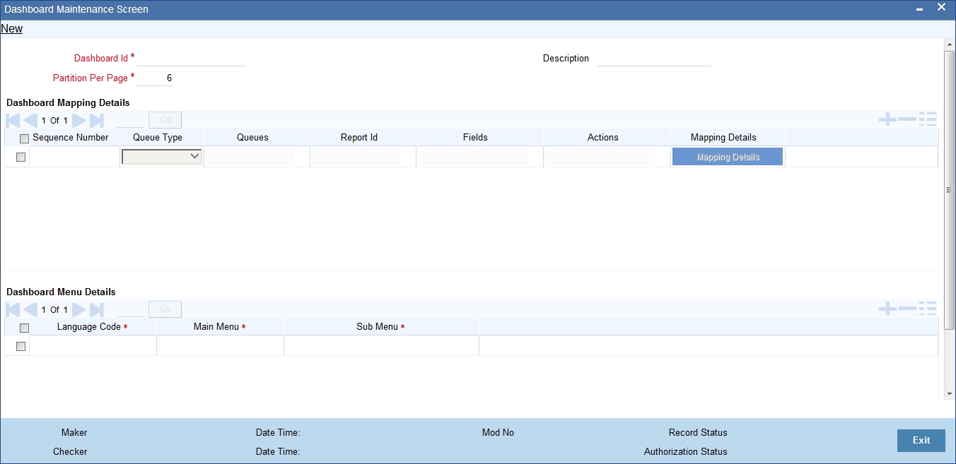 Instead of having multiple dashboards for the same set of Criteria Queue/ Report/Count, there is a facility to map them all to the ‘Dashboard Maintenance Screen’. Mapping is based on the priority of the sequence number specified. You can also configure the partition to be displayed in the dashboard per page. If there are more than one page then navigation is allowed both ways (ie. To and Fro).