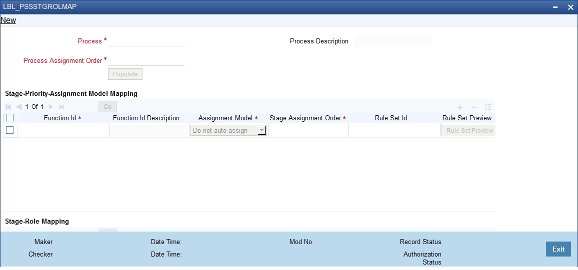 For more details on Process, Stage Assignment Model and Role Mapping screen, refer to the section Configuring Workflow Task Assignment of this user manual.