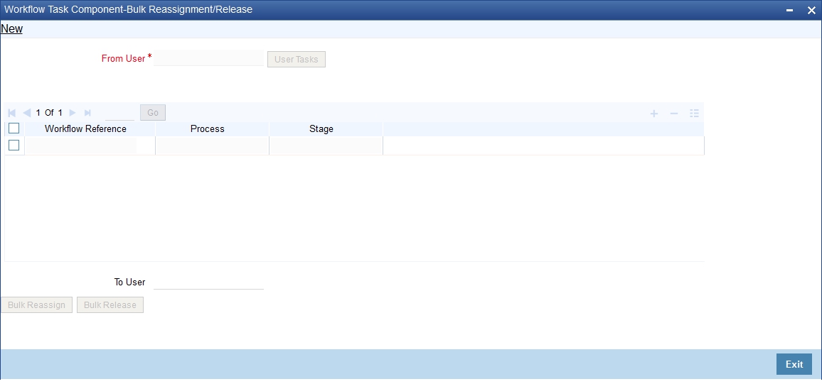 Specify the user from whom the tasks has to be reassigned. Alternatively, you can select the user from the option list. The list displays all the users maintained in the system.