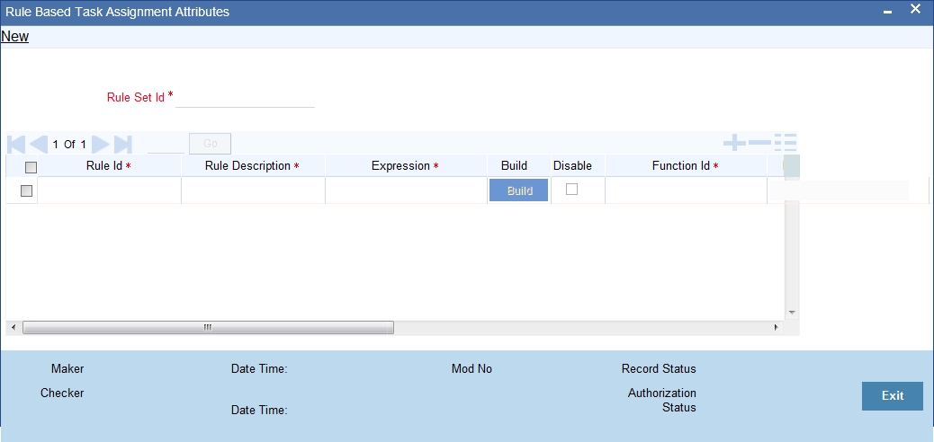 You can maintain the rules for rule based assignment method in ‘Task Rules Maintenance’ screen. You invoke this screen by typing ‘ORDCACRB’ in the field at the top right corner of the Application tool bar and clicking the adjoining arrow button.