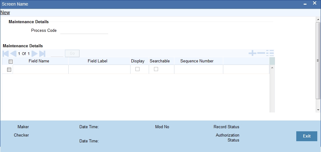 You can also choose to maintain additional fields for specific process flows, When you maintain additional fields for search operation for a process flow, the process flow is displayed under the ‘Search’ main menu and all the fields (pre-defined and the additional ones maintained for the process flow) become available for you to search on.