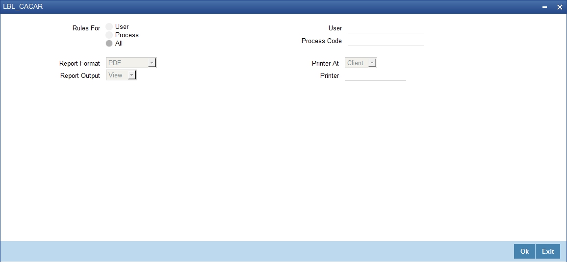This report provide the list of rules for a given User ID and process flow. You can invoke this report by typing ‘ORRCACAR’ in the field at the top right corner of the Application tool bar and clicking on the adjoining arrow button.