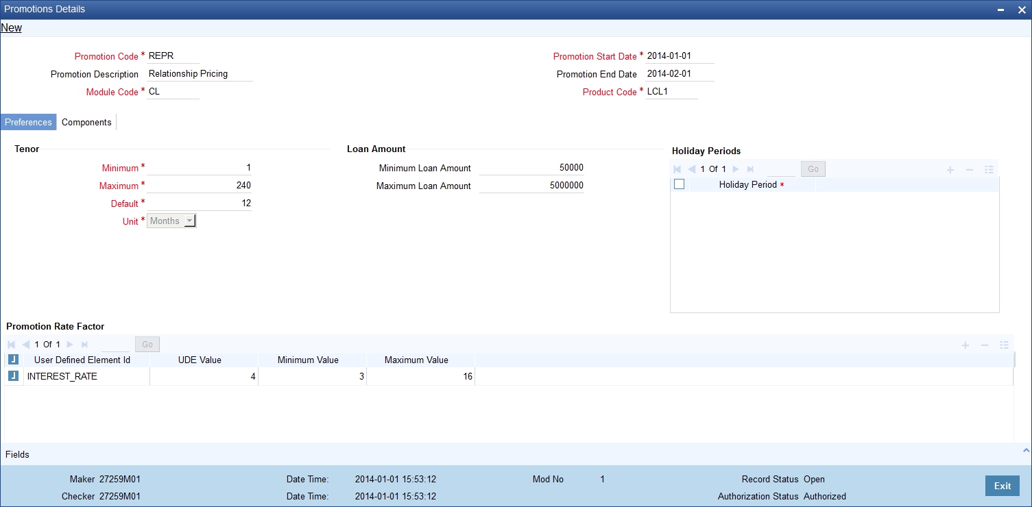 If the benefit selected in ‘Benefit Details’ screen is related to Consumer Lending module, the following screen gets displayed.
