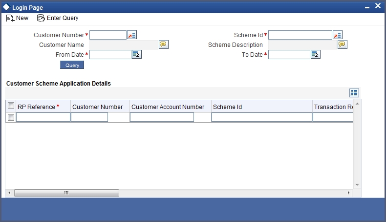 Click the ‘Query’ button to get the details of the schemes attached to the customer in ‘Scheme Details’.