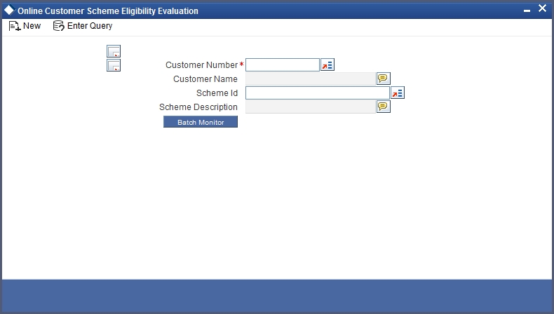 You can perform an online evaluation of customer eligibility for a scheme using the ‘Online Customer – Scheme Eligibility Evaluation’ screen. All eligibility plans associated with active schemes are evaluated and if the customer is eligible for a scheme, then customer scheme linkage gets established.