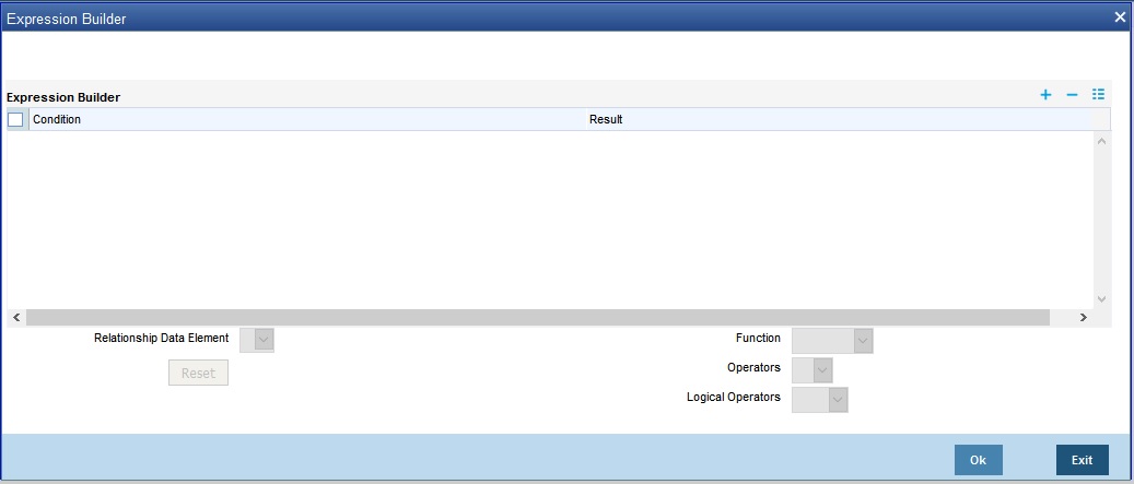 You can build the condition to be evaluated to verify the eligibility of a customer by clicking the ‘Expression Builder’ button. The ‘Expression Builder’ screen is displayed.