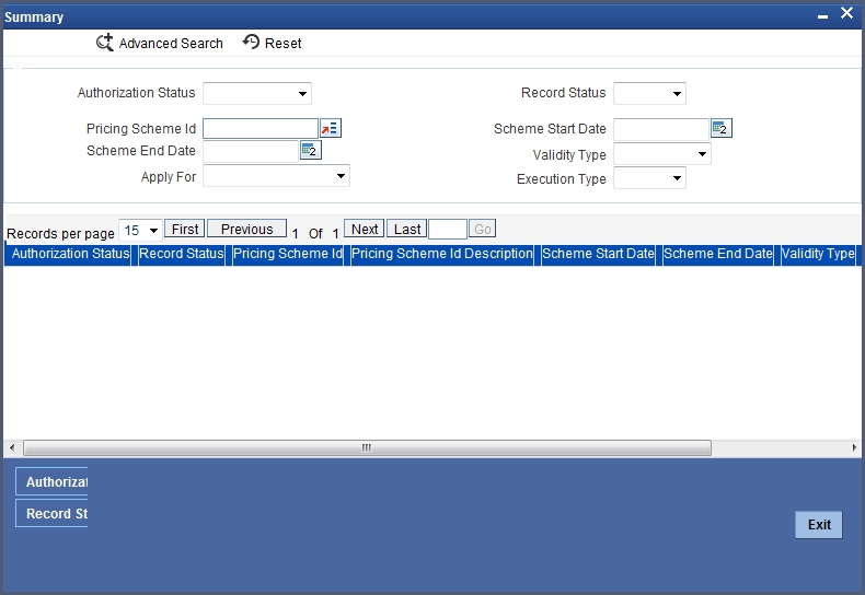 Click the ‘Search’ button to search for records according to the search criteria specified. You can also perform an advanced search using combinations of conditions by clicking the ‘Advanced Search’ button.