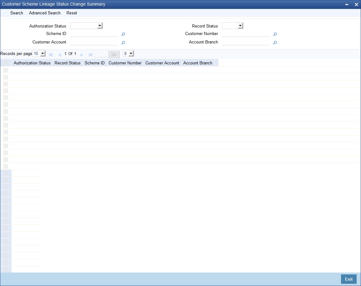 You can view the details of scheme linkage status and also search for a linkage in the ‘Customer Scheme Status Change Summary’ screen.