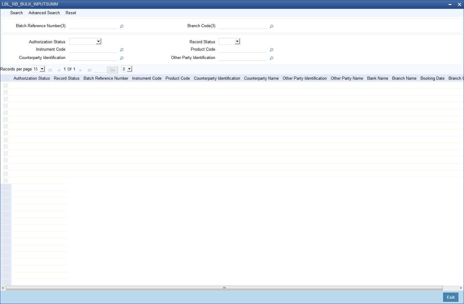 Select a reference number from the option list. Batch reference number is applicable only when an instrument needs to be added to a batch that has been already booked. Batch reference number of the bulk contracts booked on current date for the selected instrument type will be displayed here.