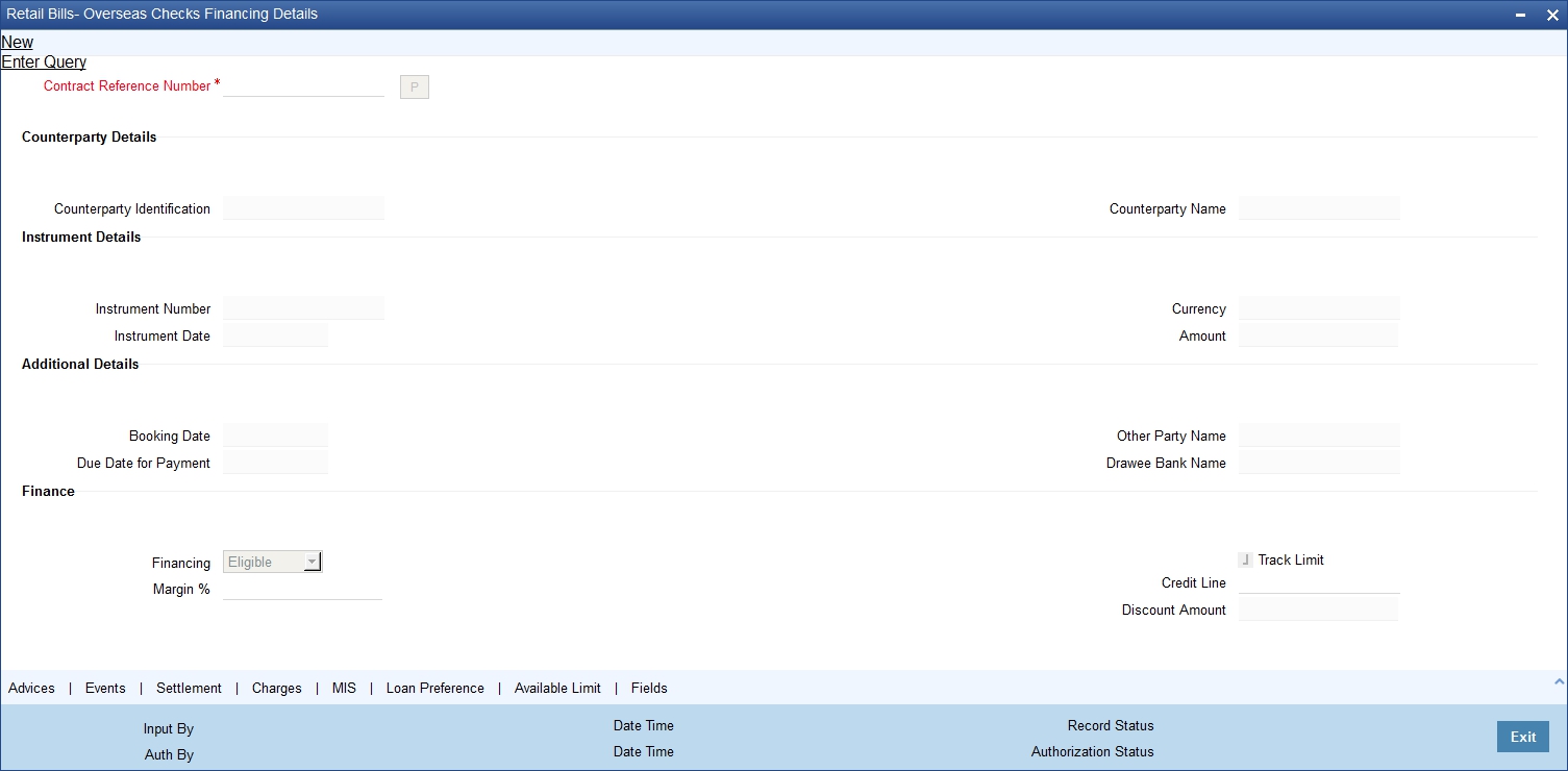 For detailed information on Settlements, Charges, MIS and Fields, refer to the section ‘Capturing Additional Details for FCY Cheques under Cash Letter’ of chapter ‘FCY Cheques under Cash Letter Arrangement’ in this User Manual.