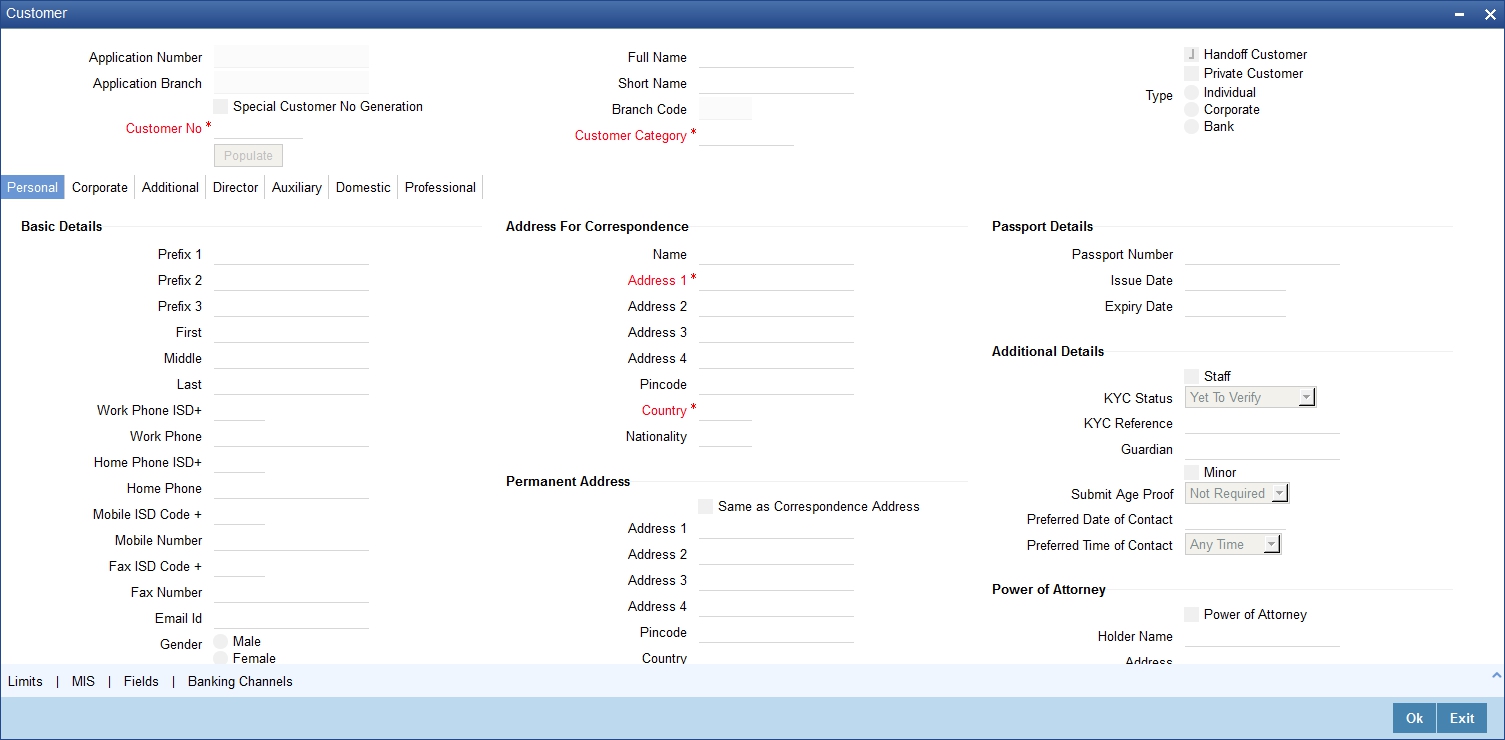 You can capture Other Applicant details in Other Applicant screen. Click ‘MIS’ button in the Retail Loan Creation screen to invoke this screen.
