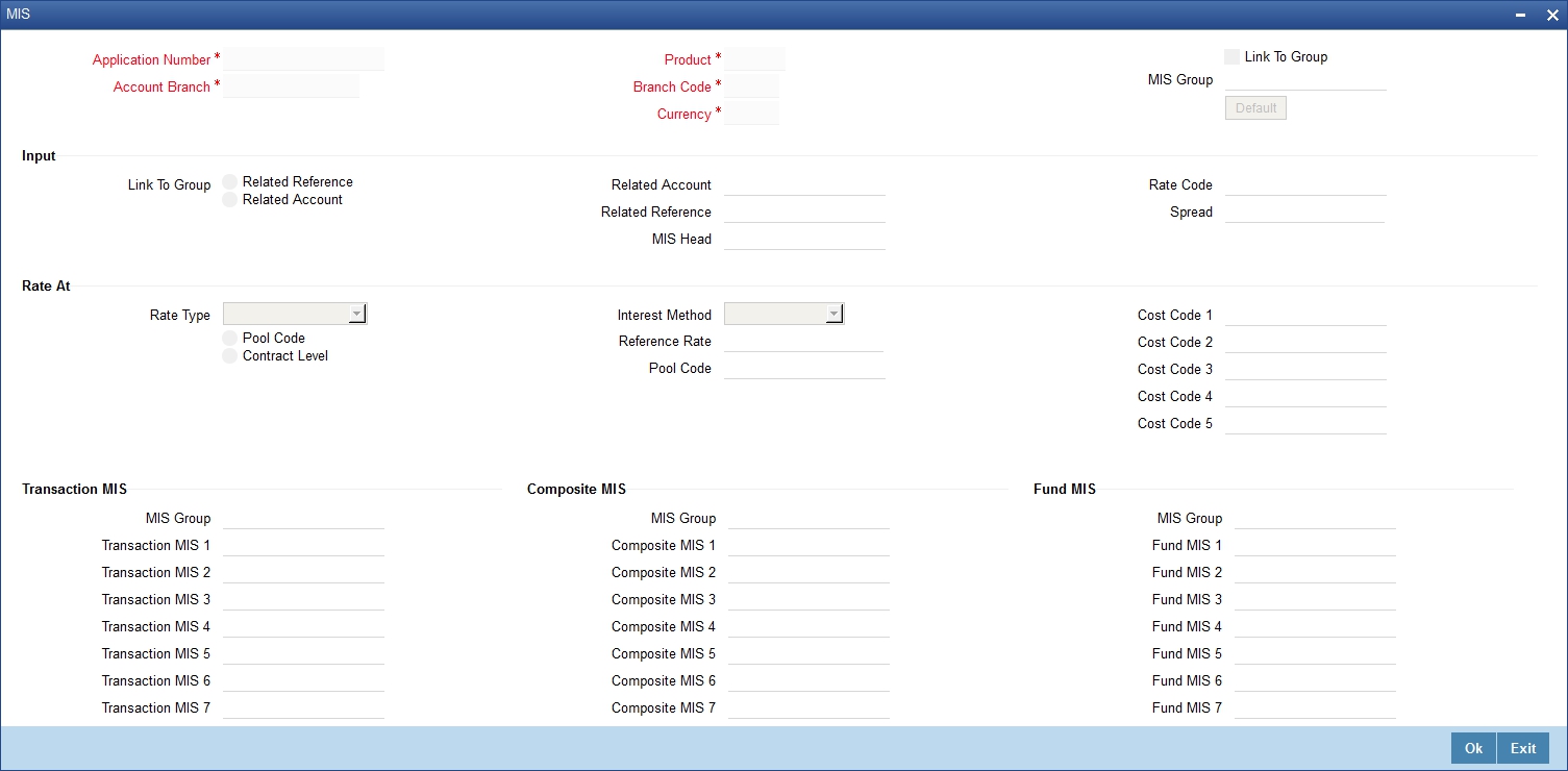 You can capture MIS details in MIS screen. Click ‘MIS’ button in the Retail Loan Creation screen to invoke this screen.