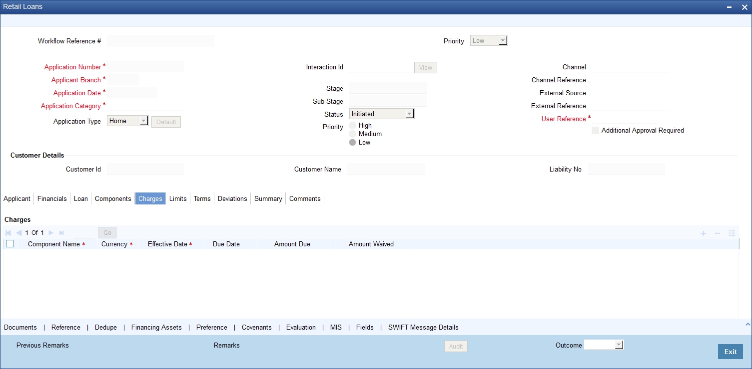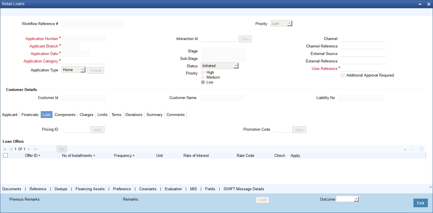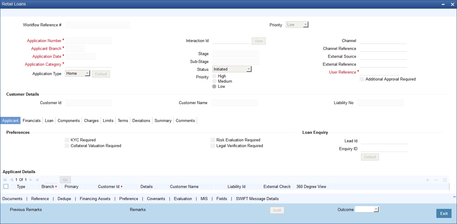 Oracle FLEXCUBE facilitates retail loan creation through a process flow. You can capture specific information based on the type of loan opted by the customer such as Home, Vehicle, Personal, Mortgage, Other Loans. This manual assist you through the available options, stages involved in the retail loan creation workflow. In the first section, the chapter briefs on the stages involved. The next section talks about the steps involved in detail.