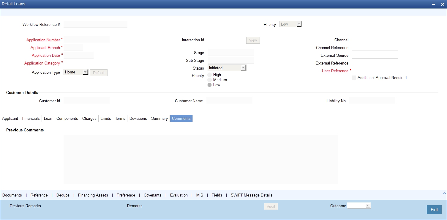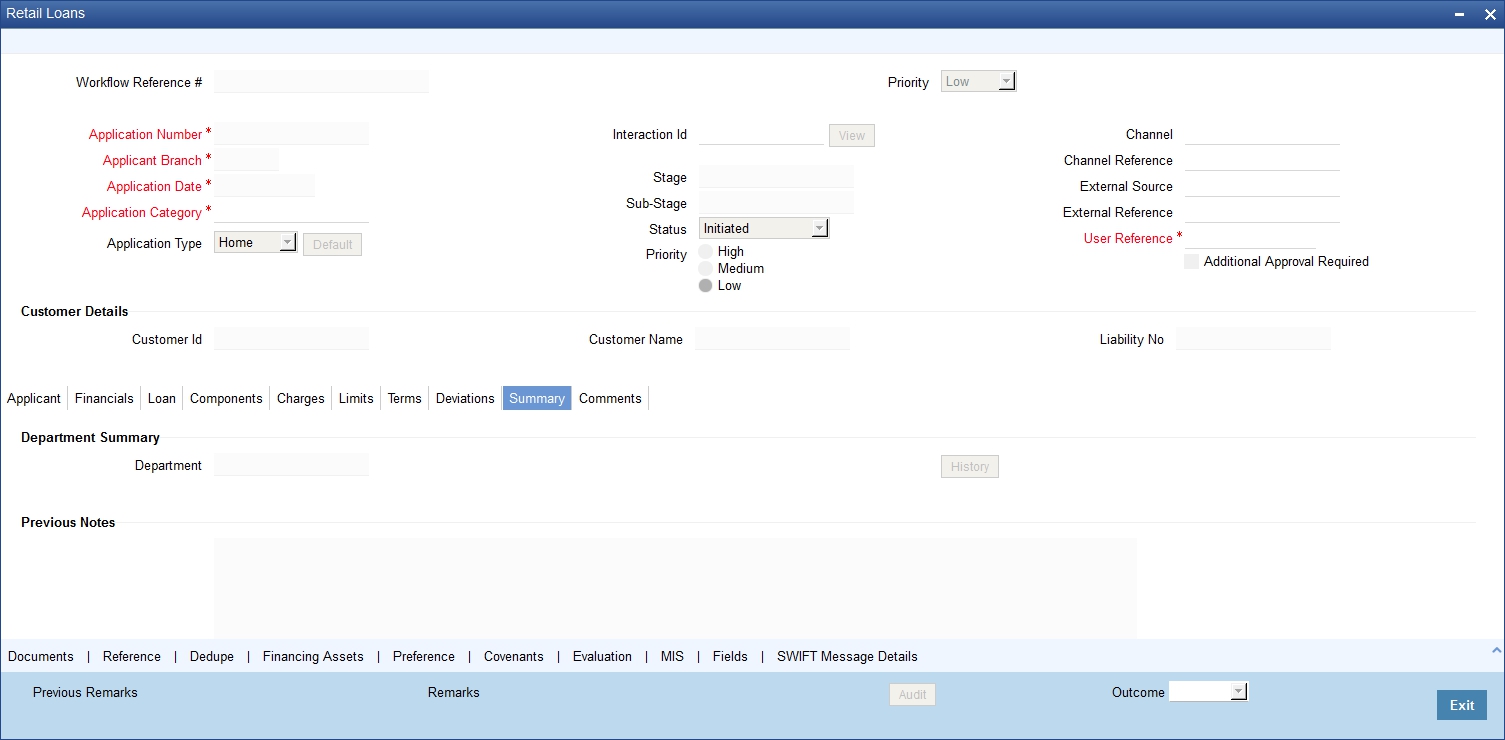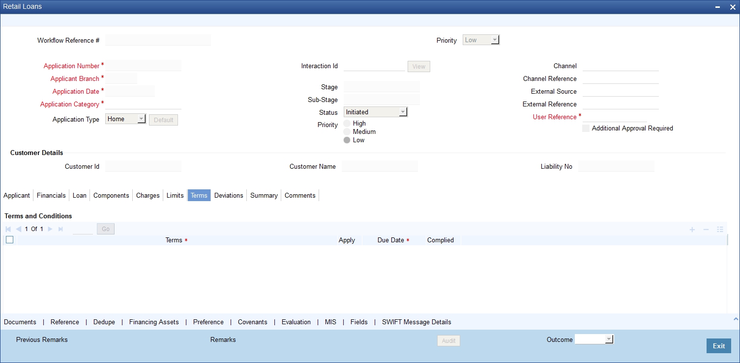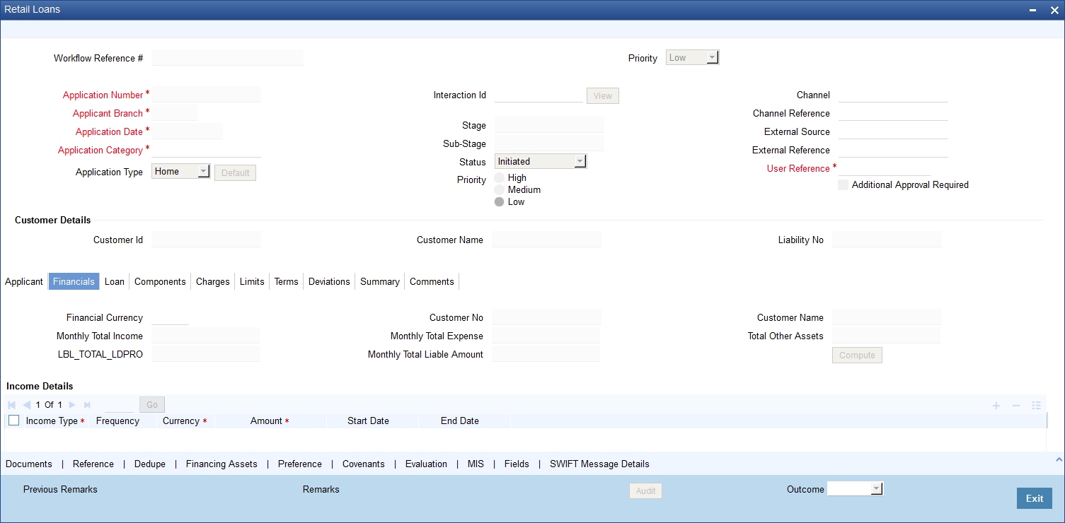 Oracle FLEXCUBE facilitates retail loan creation through a process flow. You can capture specific information based on the type of loan opted by the customer such as Home, Vehicle, Personal, Mortgage, Other Loans. This manual assist you through the available options, stages involved in the retail loan creation workflow. In the first section, the chapter briefs on the stages involved. The next section talks about the steps involved in detail.