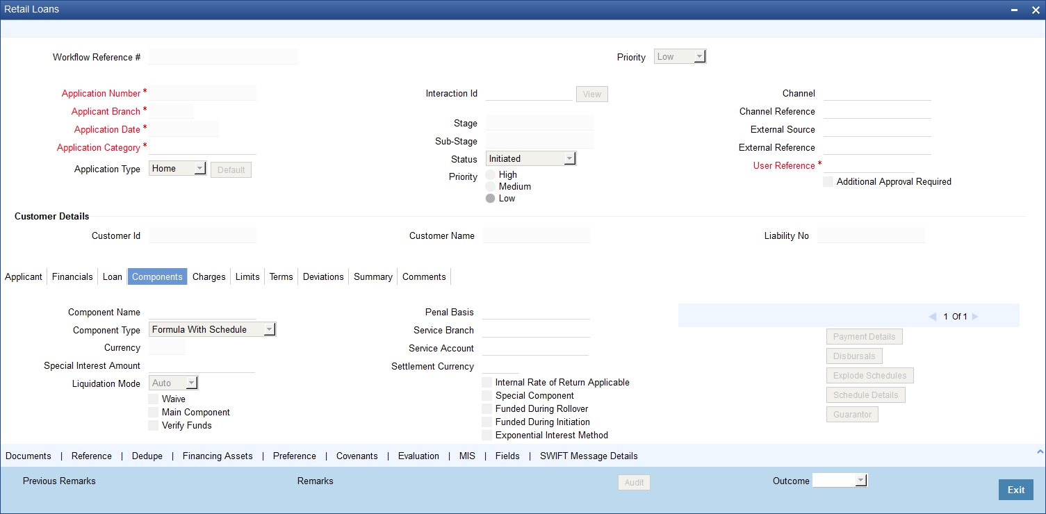 For information on Schedules and Disbursements, refer to the section ‘Components Tab’ in the chapter 'Account Creation' in Retail Lending User Manual.