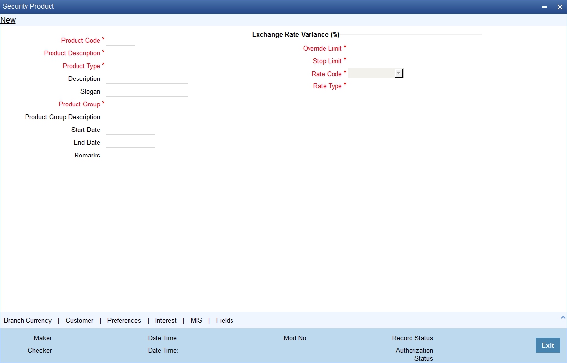 You can create a securities product in the SP Product Definition screen, invoked from the Application Browser. In this screen, you can enter basic information relating to a SP product such as the Product Code, the Description, etc.